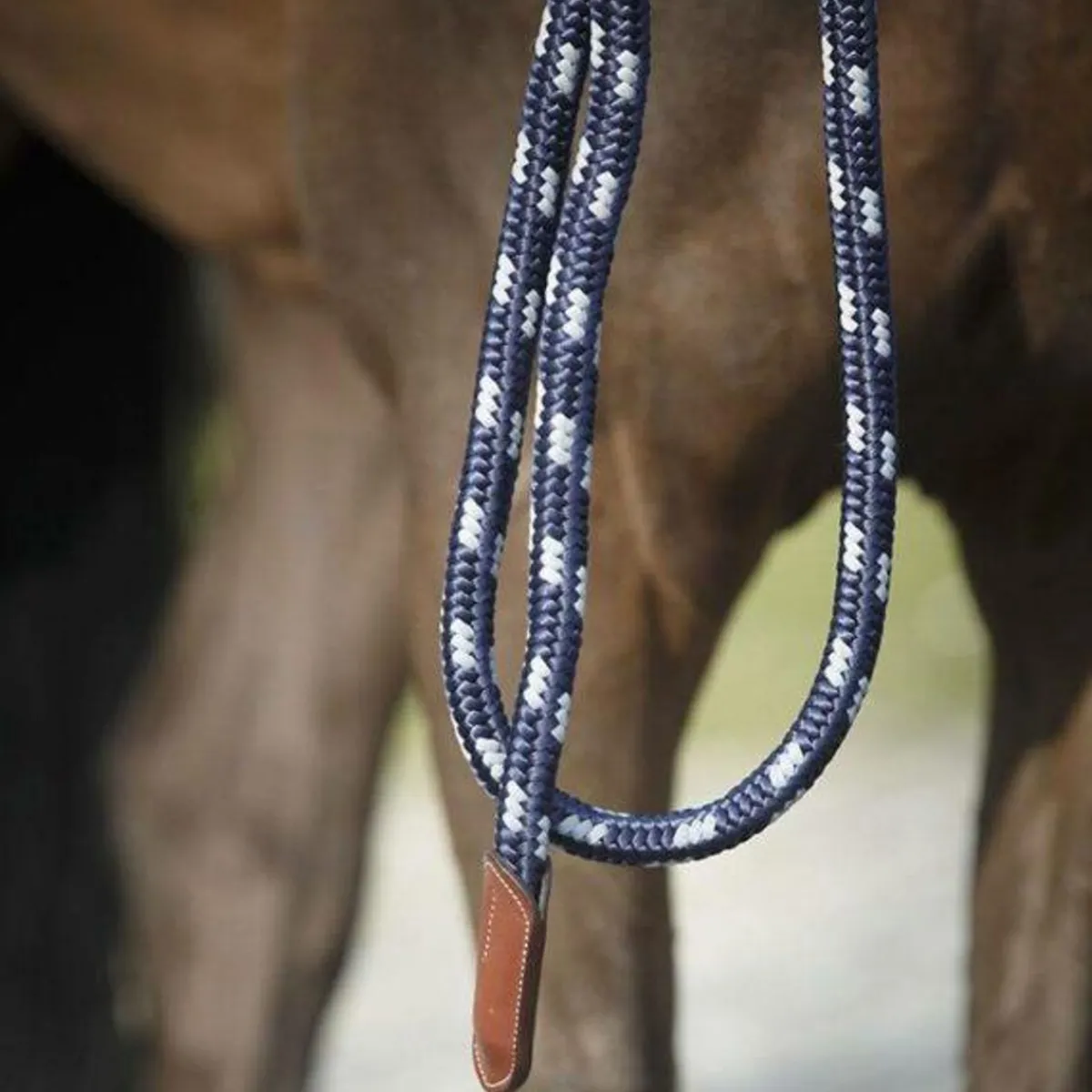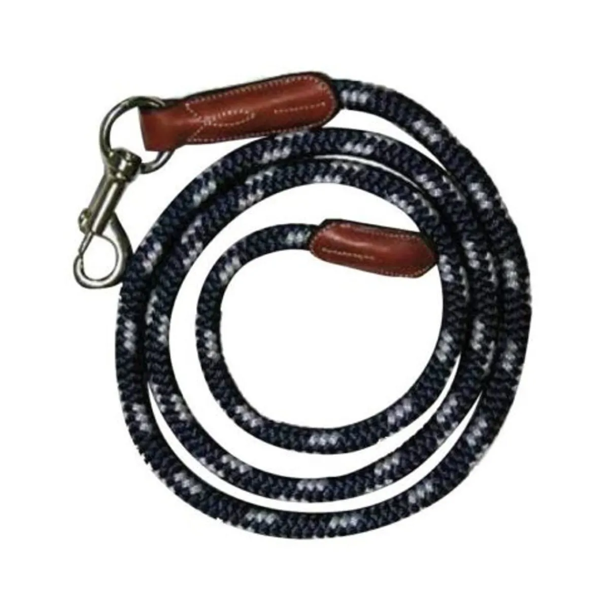 Leietau med lær avsluttning på begge ender. Spenne i sølv