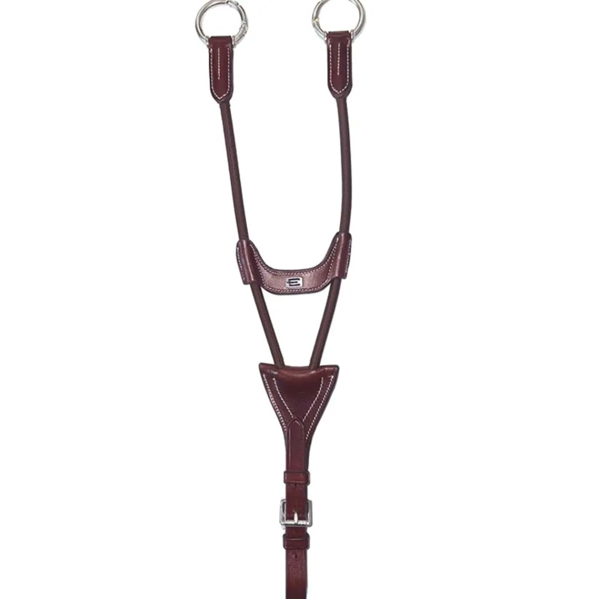Kort elastisk martingal som er justerbar, laget av eksklusivt italiensk skinn med hvite sømmer og sølvspenner!
