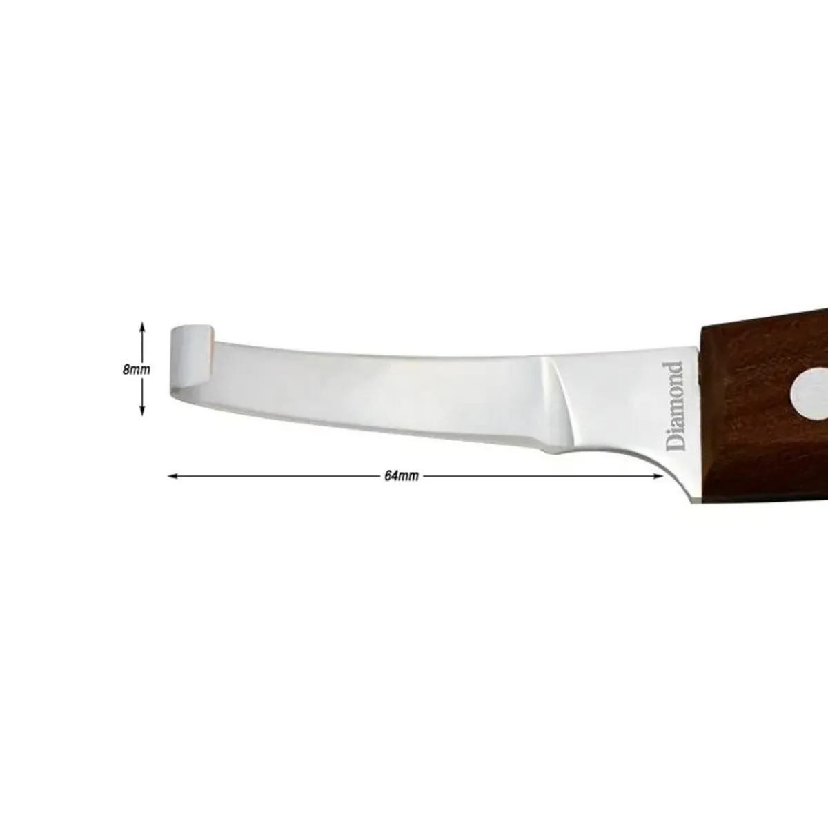 Diamond Hovkniv Smal, til å trimme såle og kråke Sylskarpt blad i rustfritt, høykvalitets stål. Smalt blad for enkelt å kontrollere hovkniven og gi rene og presise kutt.