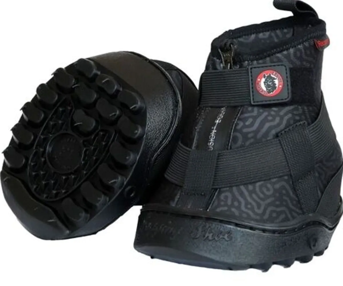 Restitusjonsskoen består av den kjente All Terrain-sålen med en unik slitebanedesign som gir utmerket grep med et optimalt gjennombrudd, god demping og stabilitet. Den øvre delen er et vanntett elastisk neoprenemateriale. Vanntett glidelås og elastisk stropp sammen med en hælkonstruksjon som muliggjør uhindret naturlig bevegelse av hælene. Den konstruerte fleksible og elastiske skoen gjør at hoven kan synke ned i gummisålen og gjør at hoven får full kontakt med sålen for å sikre naturlig blodstrøm og hovfunksjoner.