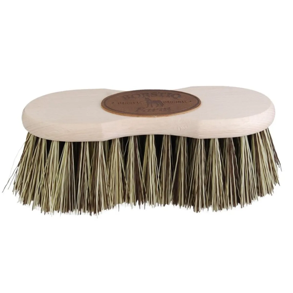 Midjeformet trehåndtak for et godt grep. Medium stiv bust i syntetfiber som effektivt fjerner støv, skitt og flis fra hestens hårlag.