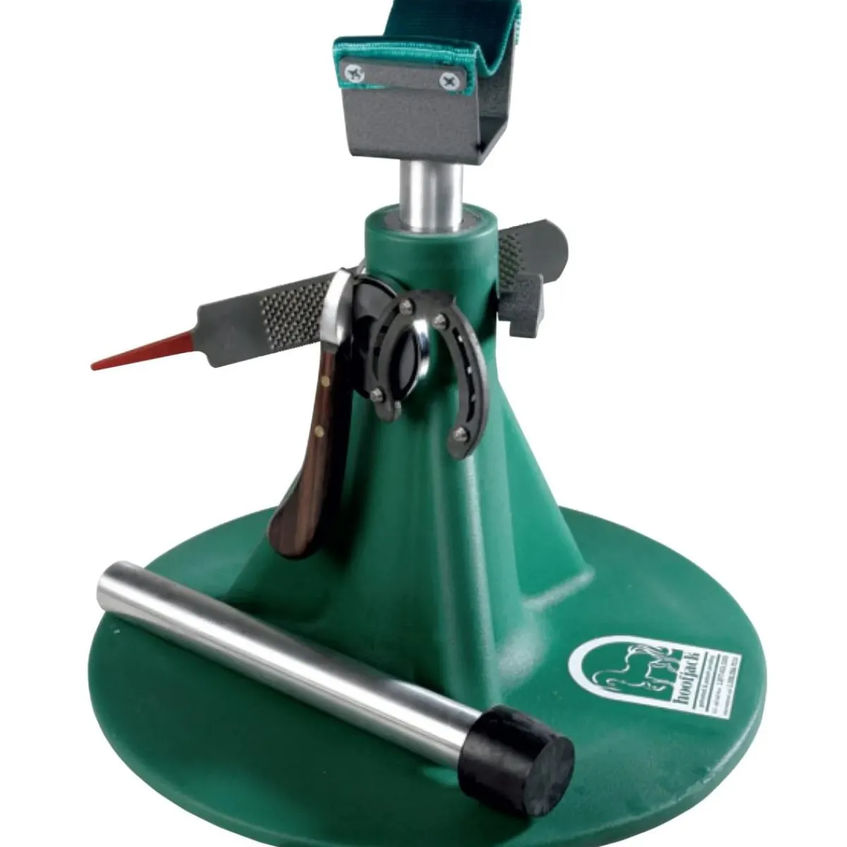 Hoofjack Fotstøtte – komfortabelt både for hest og hovslager Meget stødig, solid og lett fotstøtte i plast (polyetylen) og aluminium!