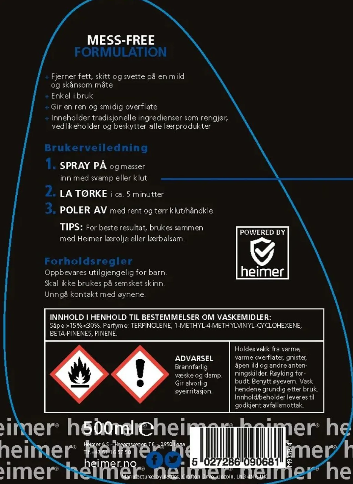 TIPS: For best mulig resultat, brukes den sammen med Heimer lærolje eller lærbalsam.