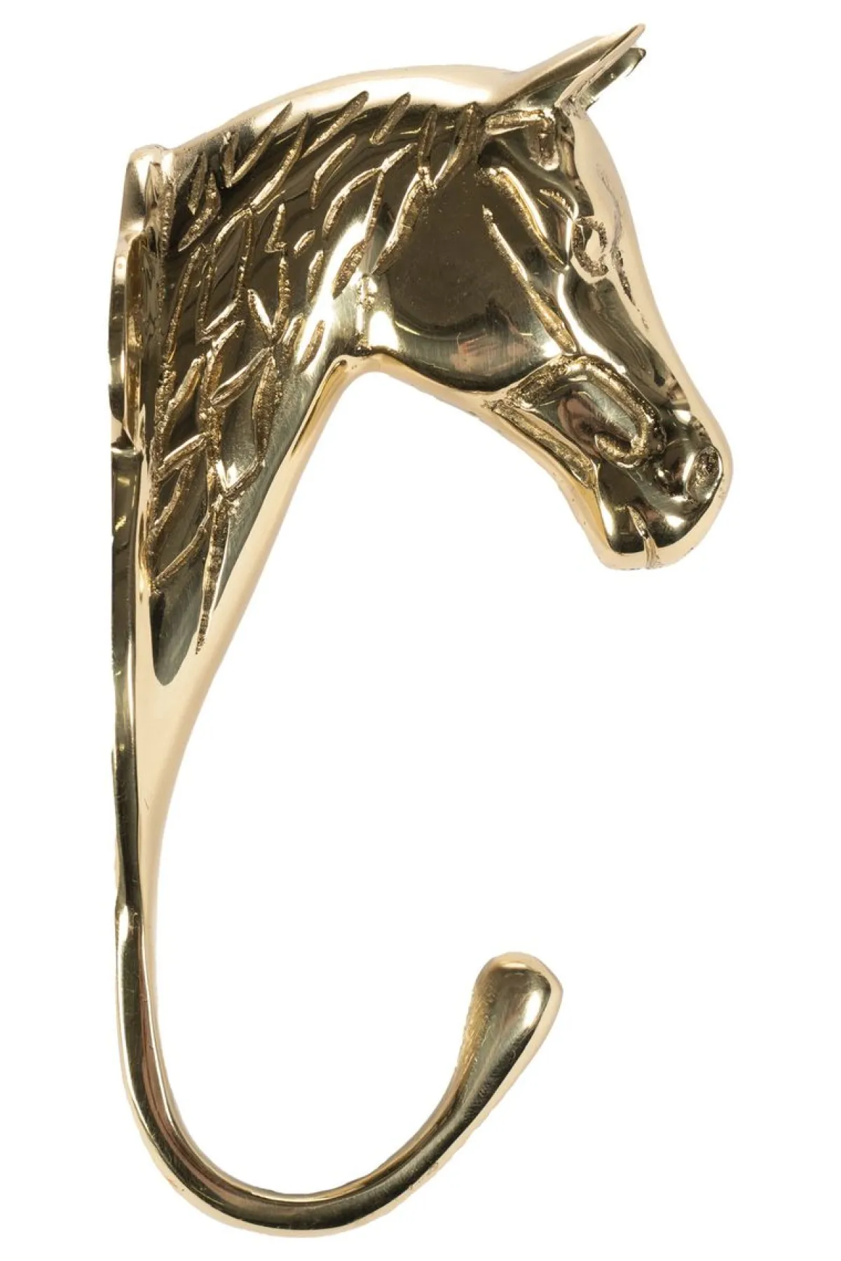Hestehode-knaggen i messing kombinerer funksjonalitet med et stilfullt utseende. Den solid utformede holderen tilbyr en fleksibel opphengsmulighet og gjør dermed daglige rutiner enklere. Det høykvalitets materialet gir holderen et elegant utseende, samtidig som det er spesielt holdbart og robust. I formen av et hestehode er det et elegant blikkfang som ikke bare gjør stallen ryddigere, men også mer stilfull.