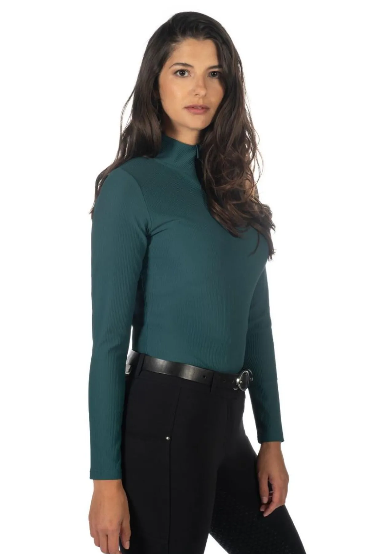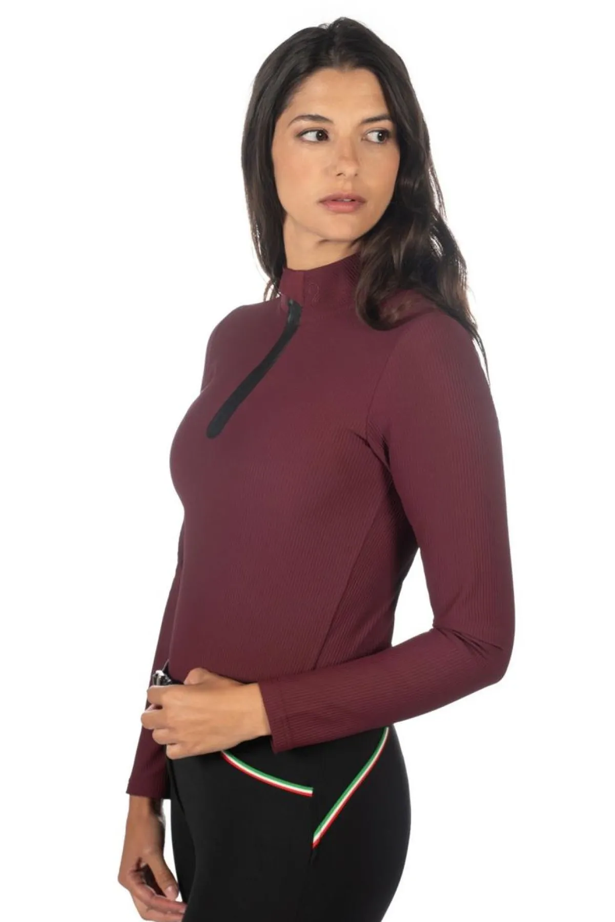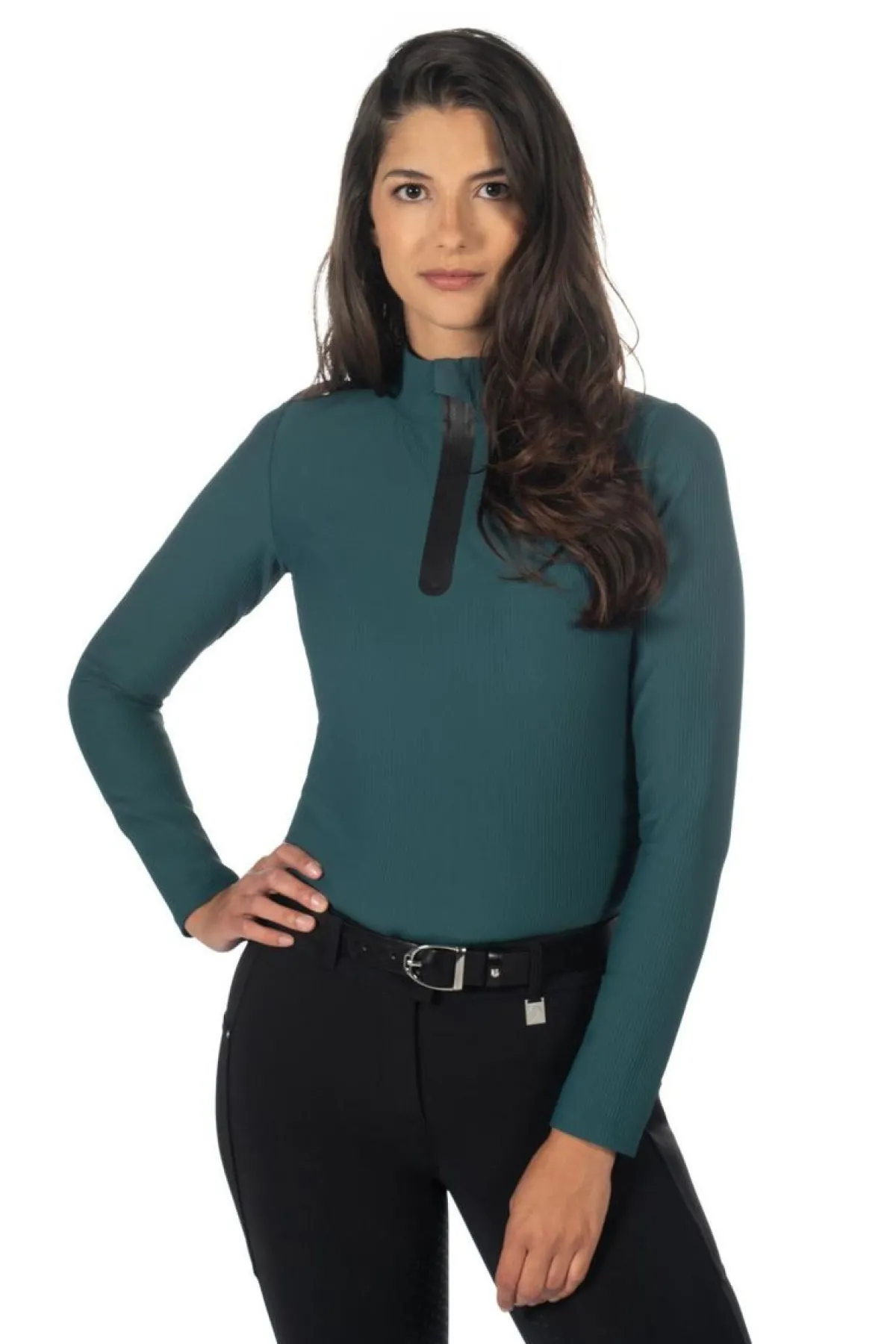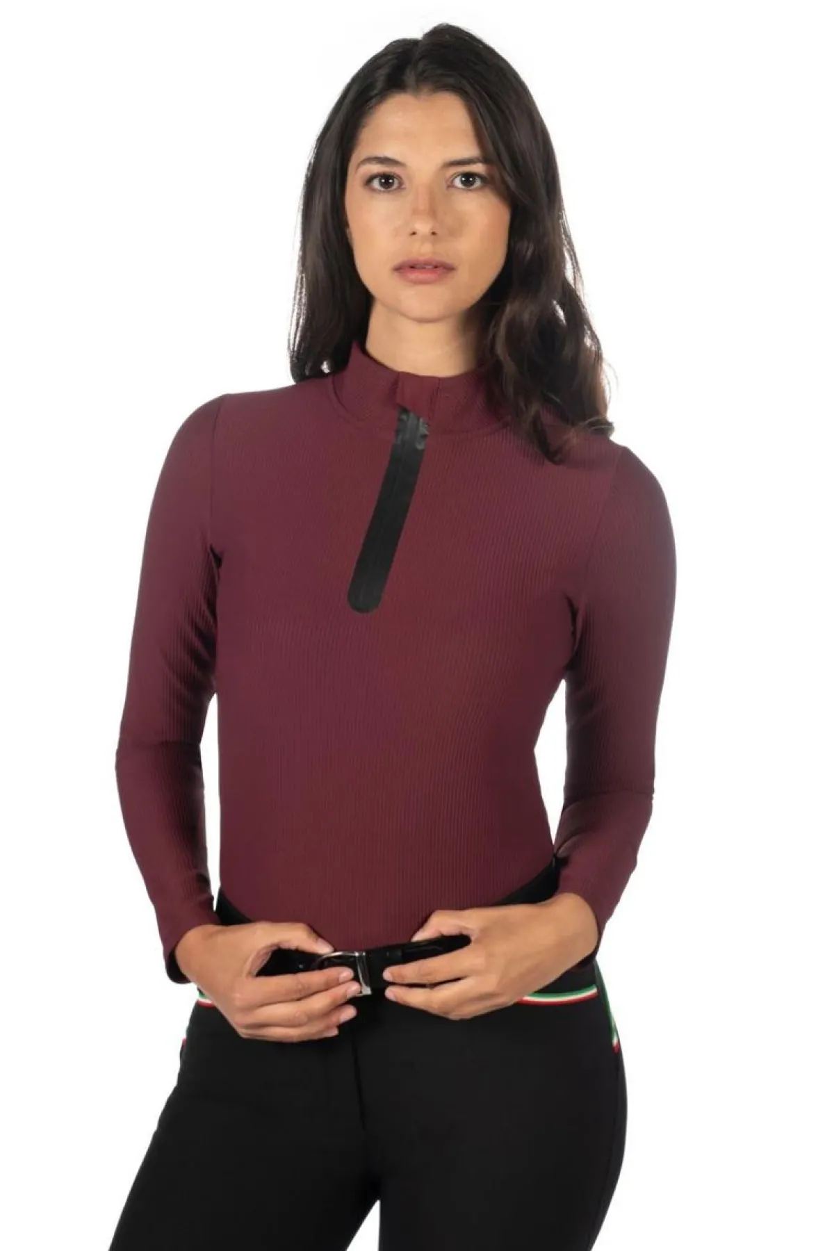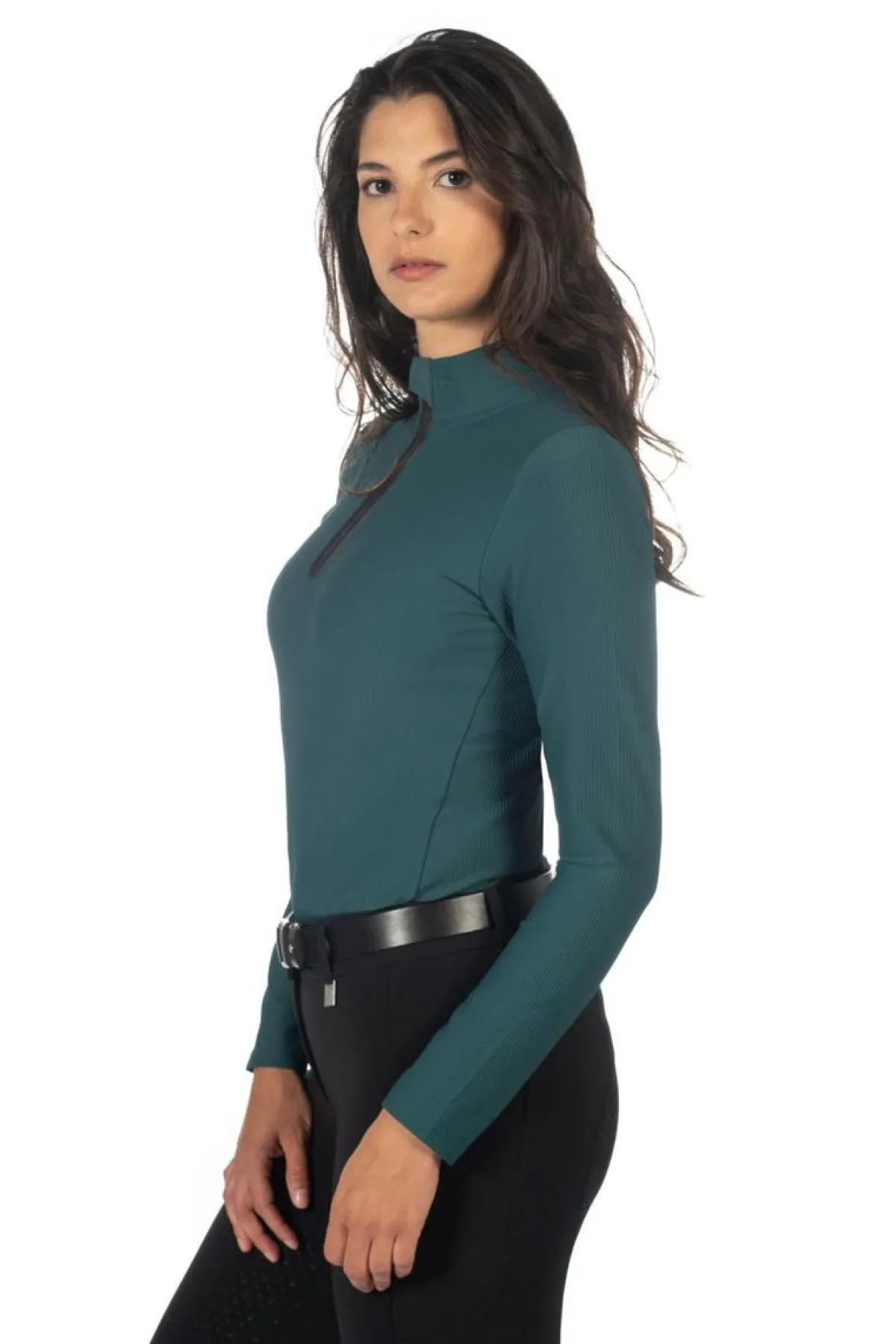 Langermet funksjonsskjorte i ribbestrikket elastisk materiale.