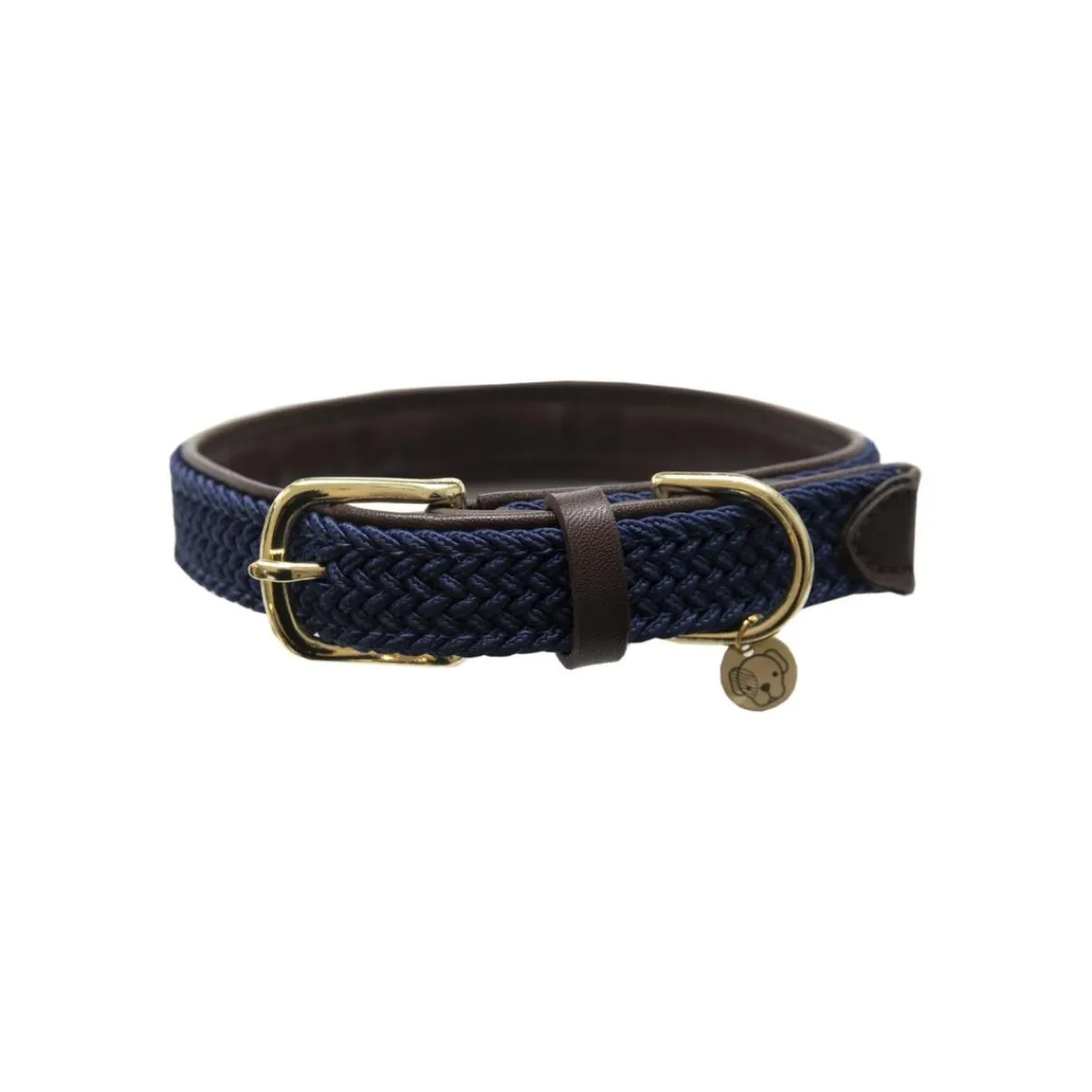 Halsbåndet har en ring til å feste kobbelet i og en søt hundelogo som du kan gravere hundens navn på.