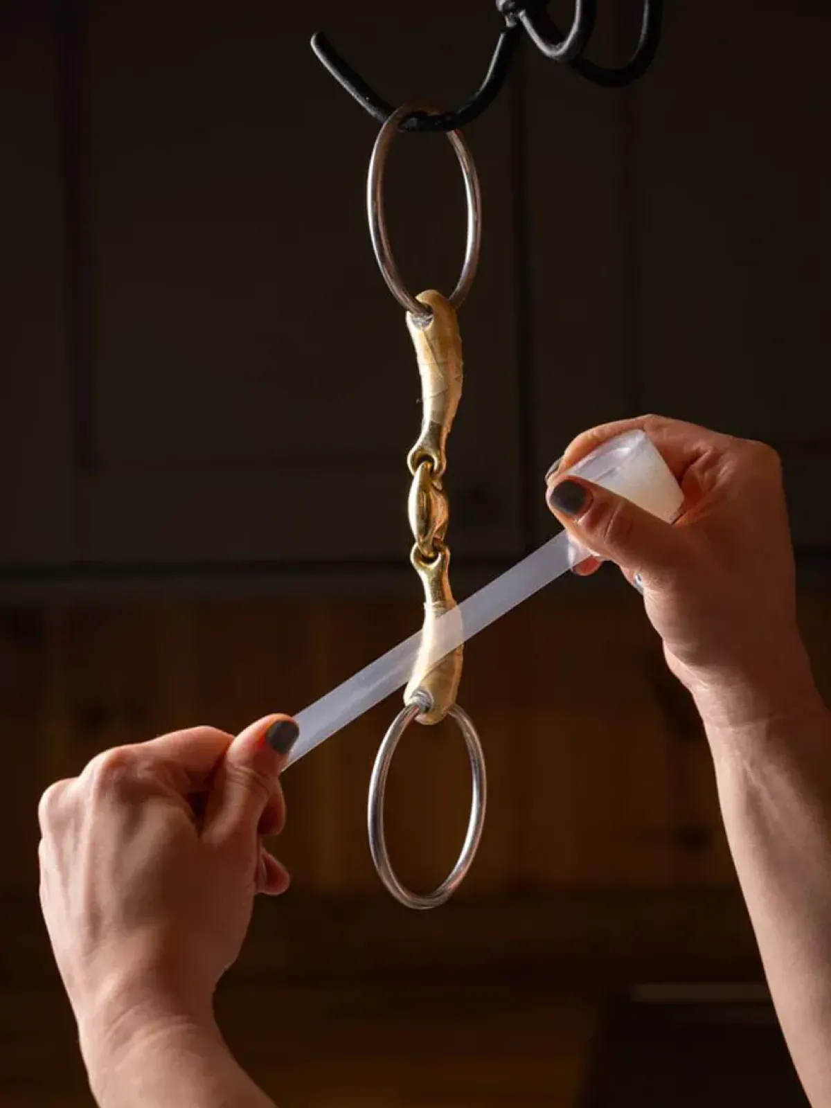 Et must-have i salrommet. Denne praktiske bitt-innpakningstape er ideell for sensitive hester, da den forvandler bittet og skaper en myk overflate.