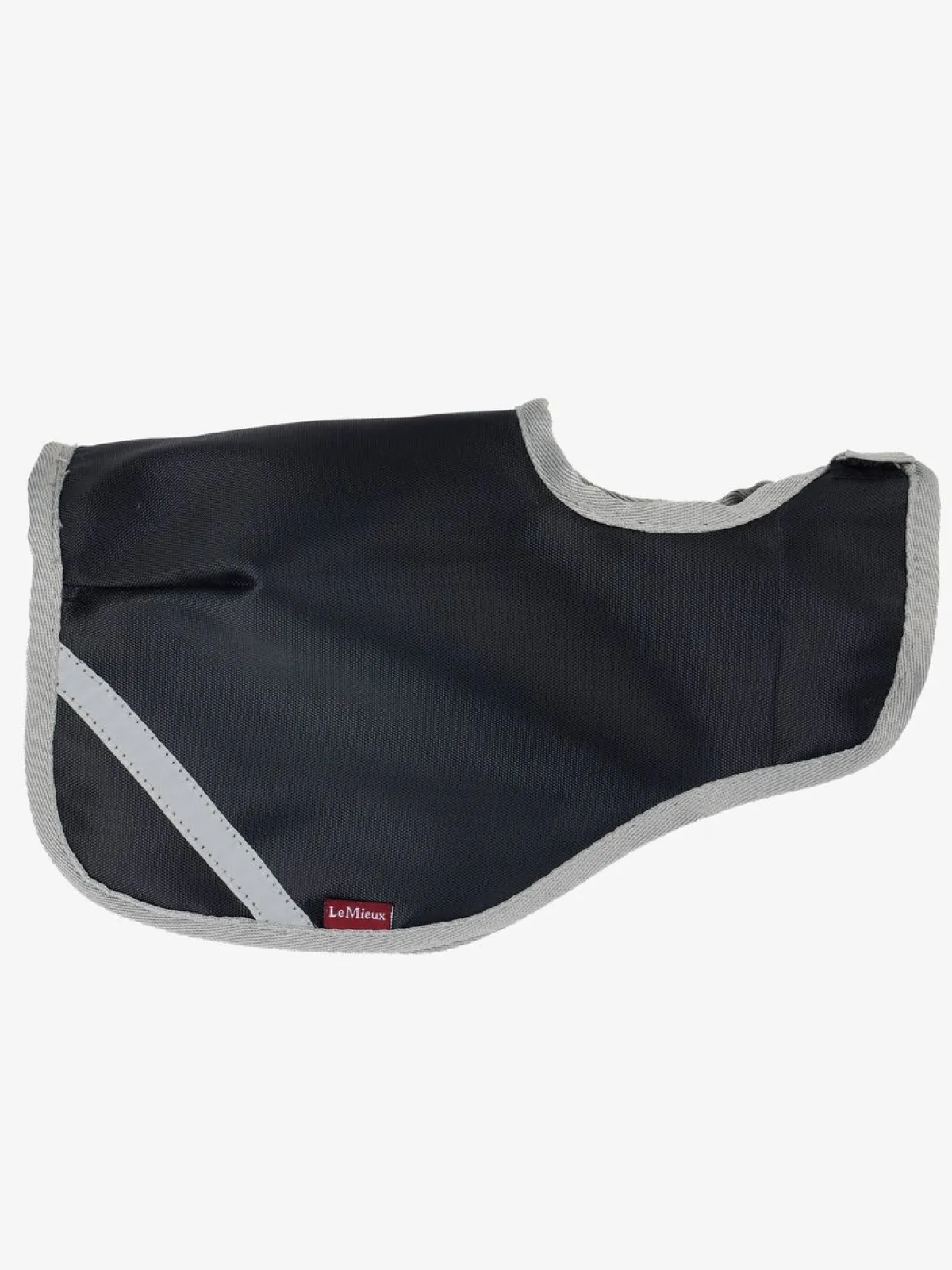 Dette ridedekkener har borrelåslukking, er regntett, har mikrofleece-foring og reflekterende paneler.