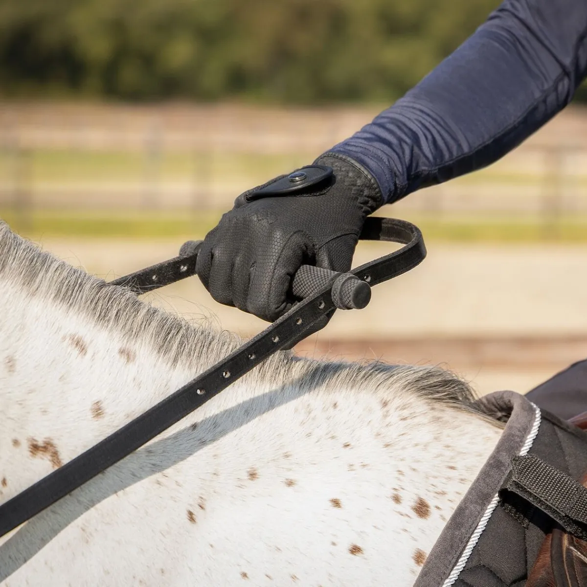 Enhåndstøylen er egnet for å sjekke om hesten din går på egne ben. I tillegg kan du som rytter sjekke om du sitter selvstendig, men du kan også trene på dette med enhåndstøylen!