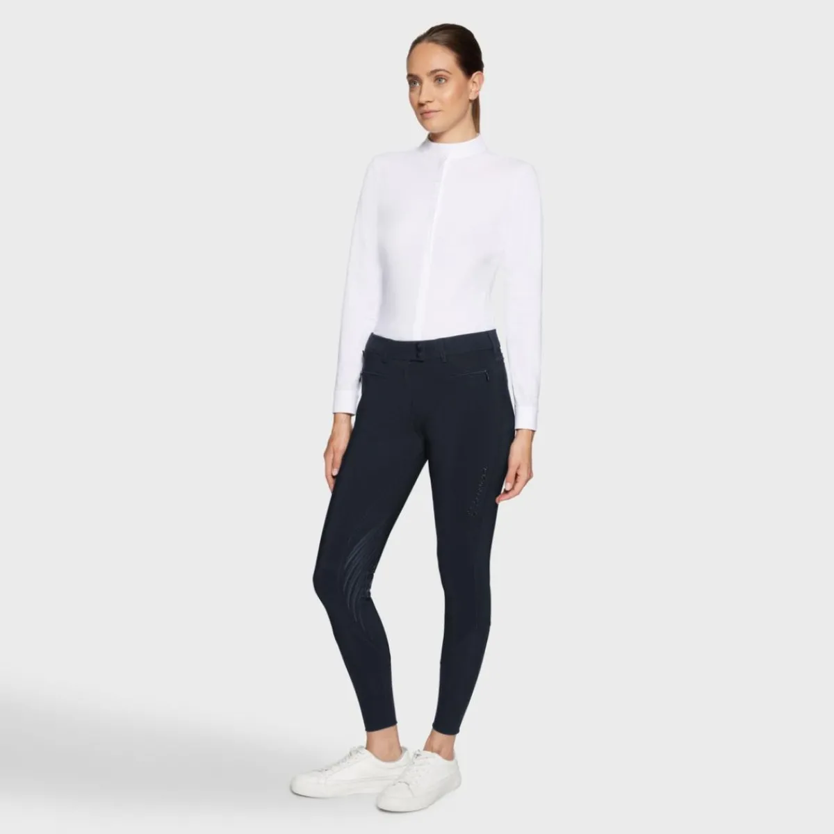 Buksen er laget av høy stretch, ekstra behagelig italiensk stoff som gir en ekstra hudfølelse for rytteren med eksepsjonell bevegelsesfrihet mens et sekslags grep gir utmerket stabilitet i salen.