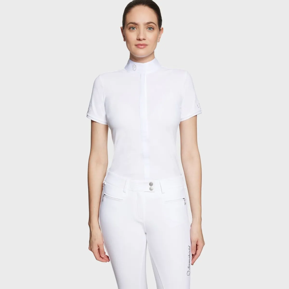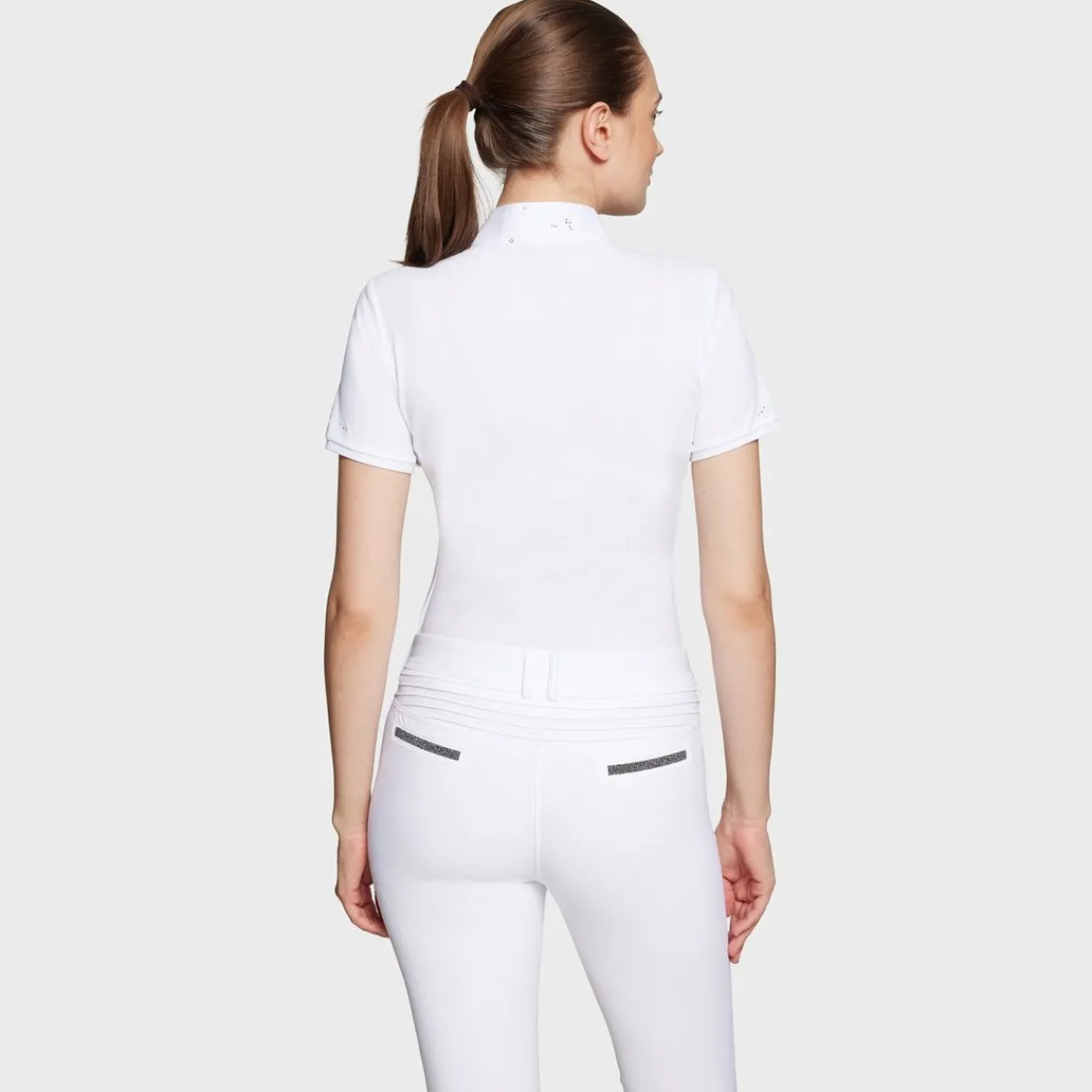 Kortermet design med Swarovski blason, usynlig glidelås med magneter og broderi med krystalldetaljer på krage og ermer!