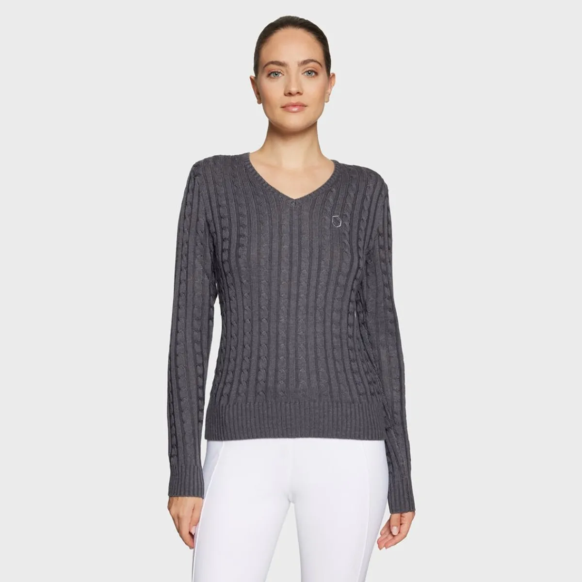 Denne luksuriøse V-halsgenseren kombinerer komfort og design, med en flatterende passform og intrikate detaljer.