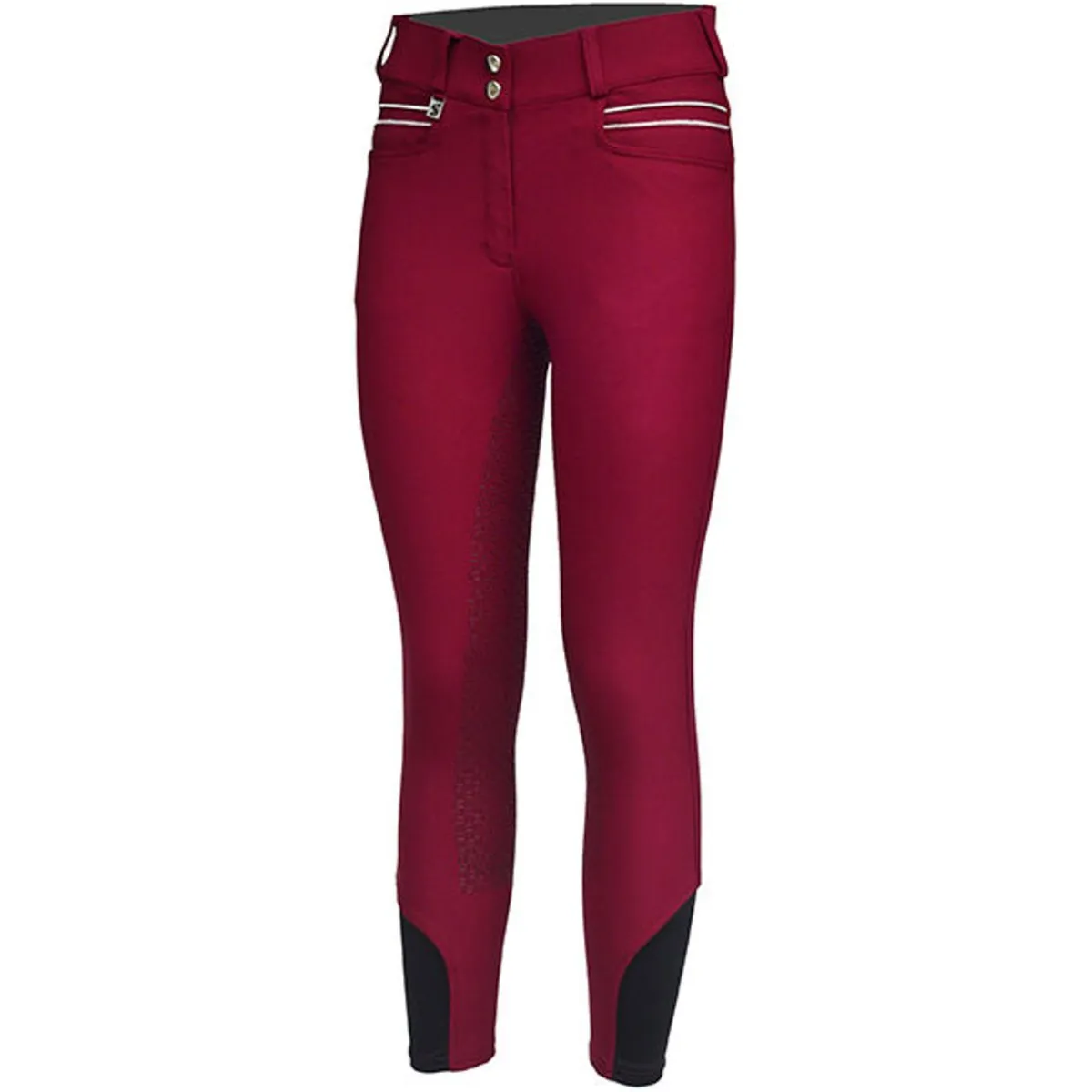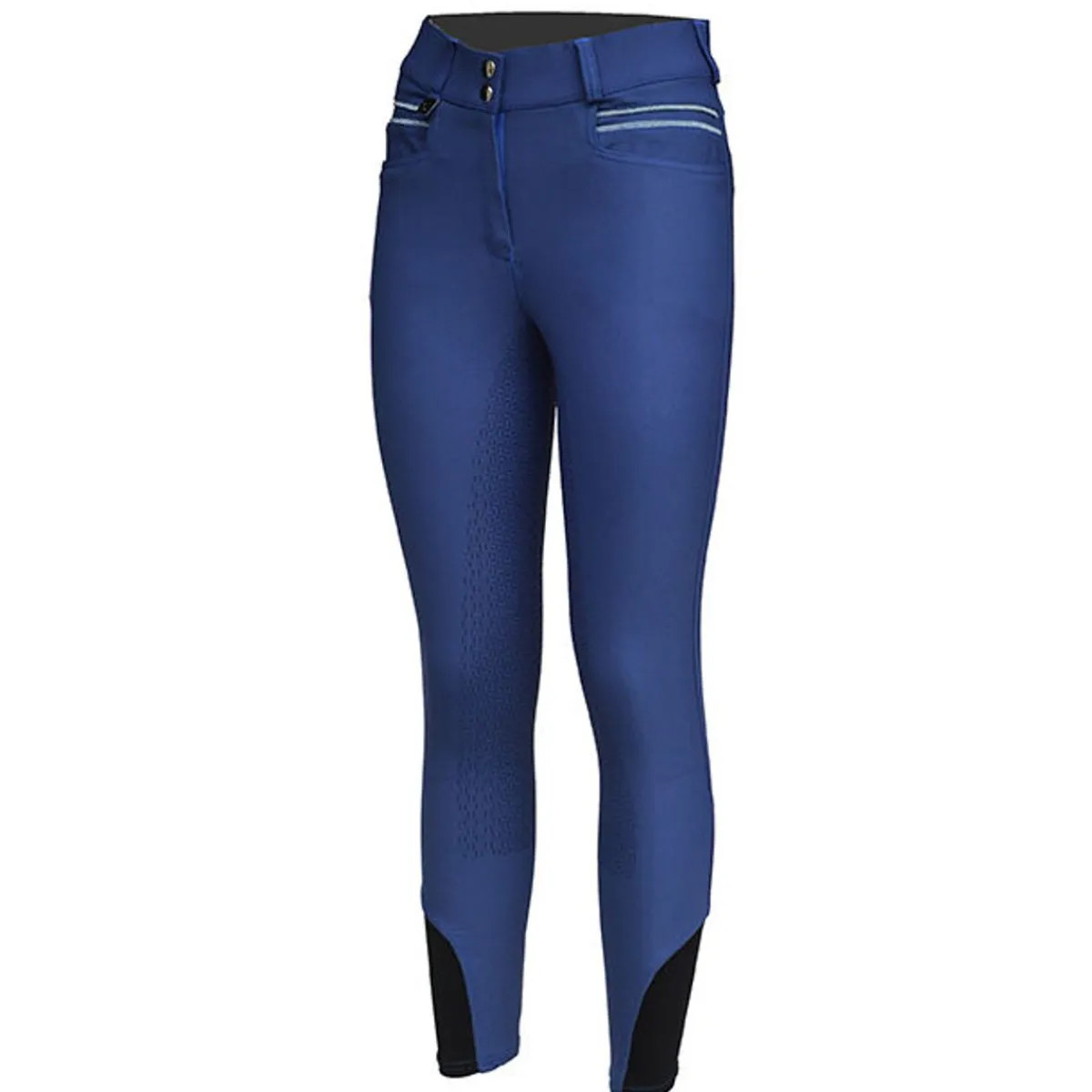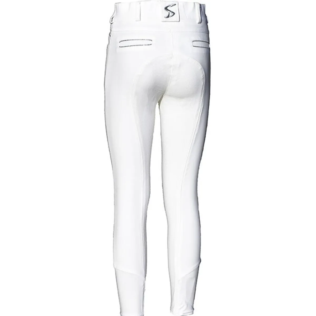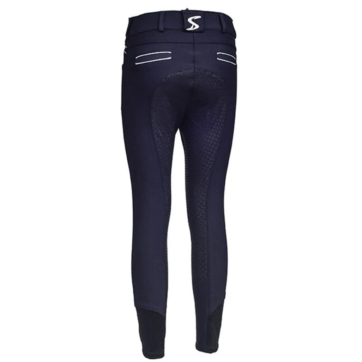 Stoffet er svært elastisk, noe som gjør at buksen sitter godt samtidig som man har stor bevegelsesfrihet. Sølvstripene over lommene og Skoies-broderiet på beltehempen bak gir prikken over ien på denne ridebuksen.