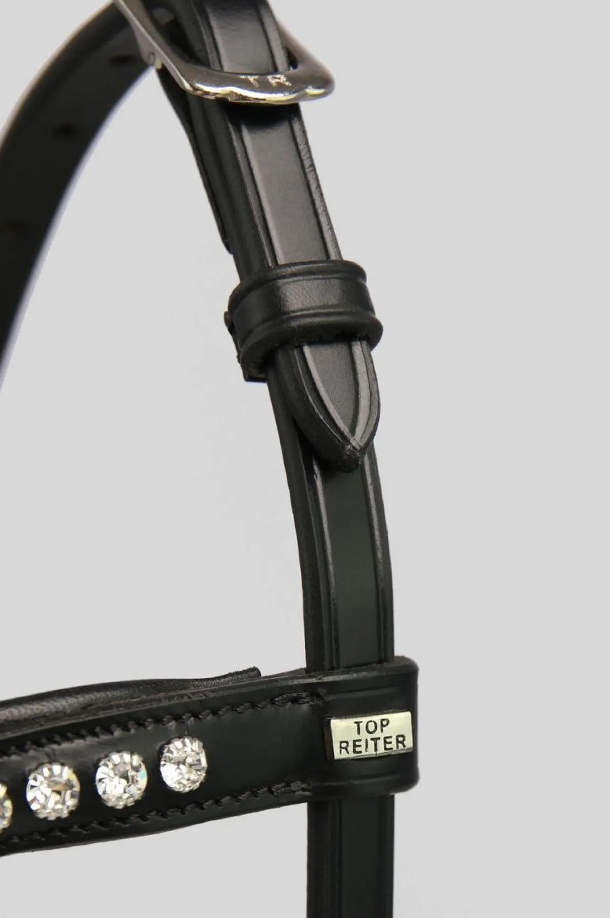 Utsmykket med klare krystaller på pannebåndet.