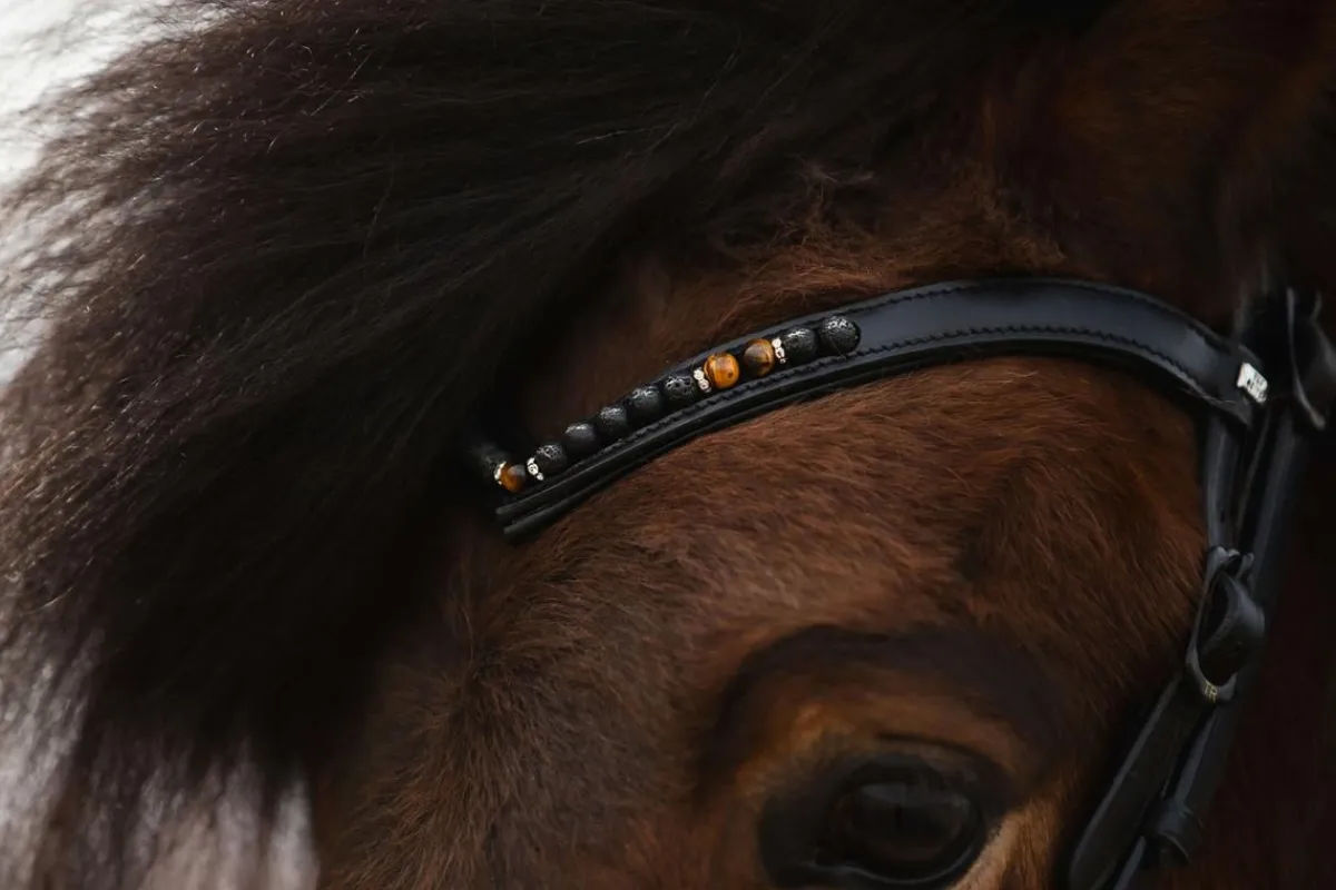 Nakkreim fra Top Reiter lavaperler og tigerøyestein.