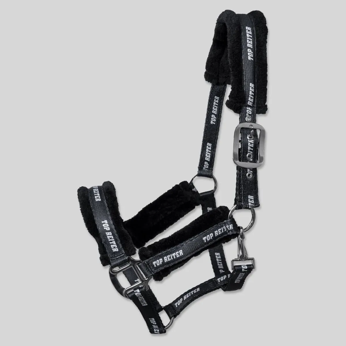 Grimen kan justeres i nakken og ved nesen. Ekstra polstret med myk teddy. Vevde Top Reiter-bokstaver som gir det lille ekstra til grimen.