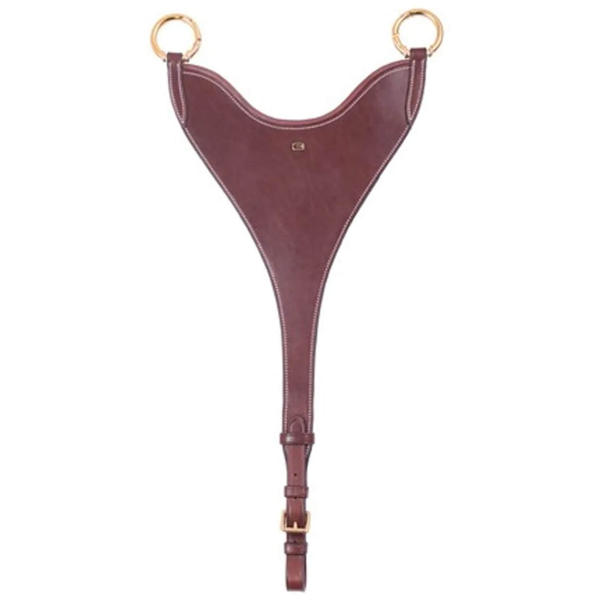 Kort martingale BIB som er justerbar, laget i eksklusivt Italiensk skinn med hvite sømmer og messingspenner!