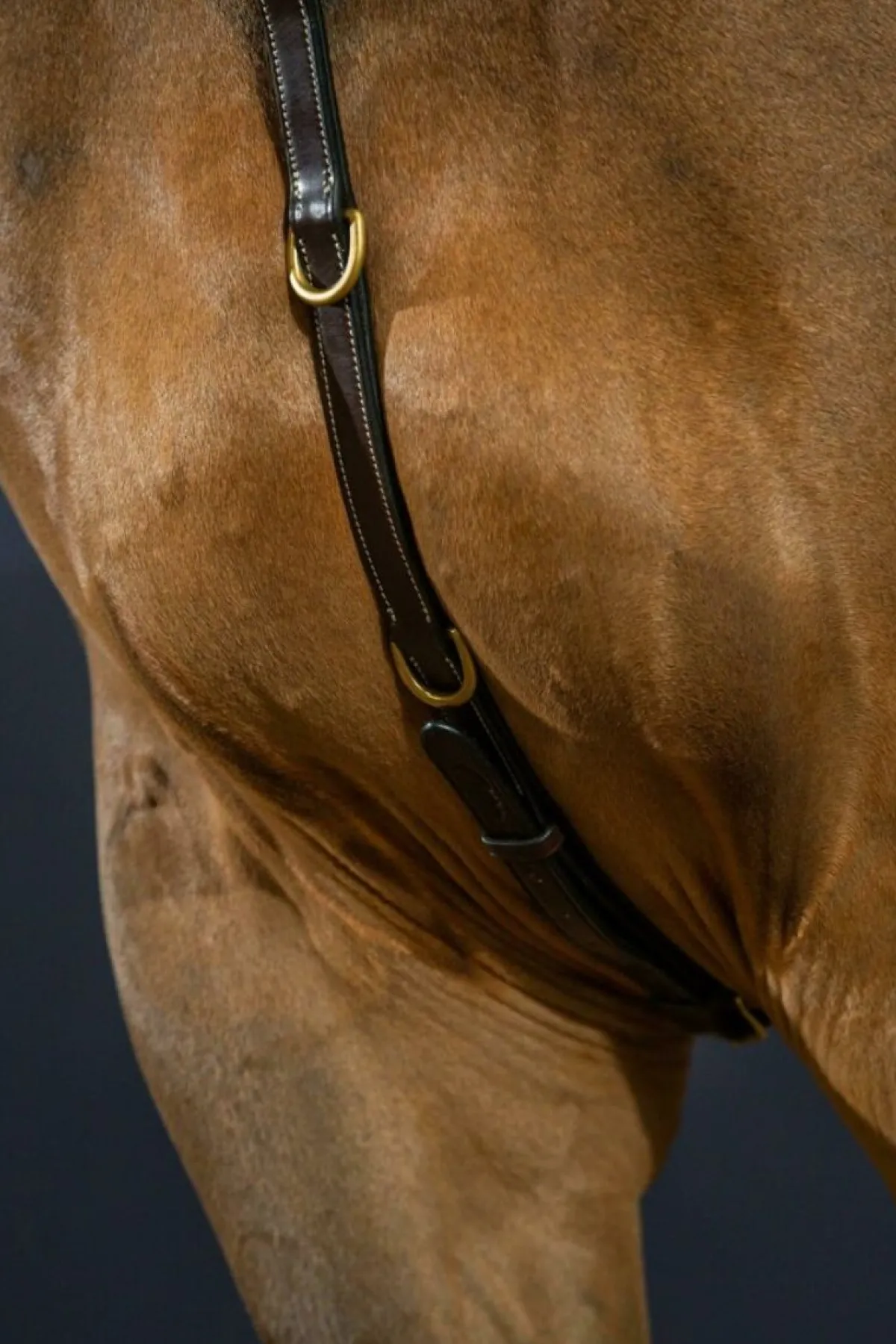 Fortøy i flott engelsk lær med mønstersøm! Messingspenner.