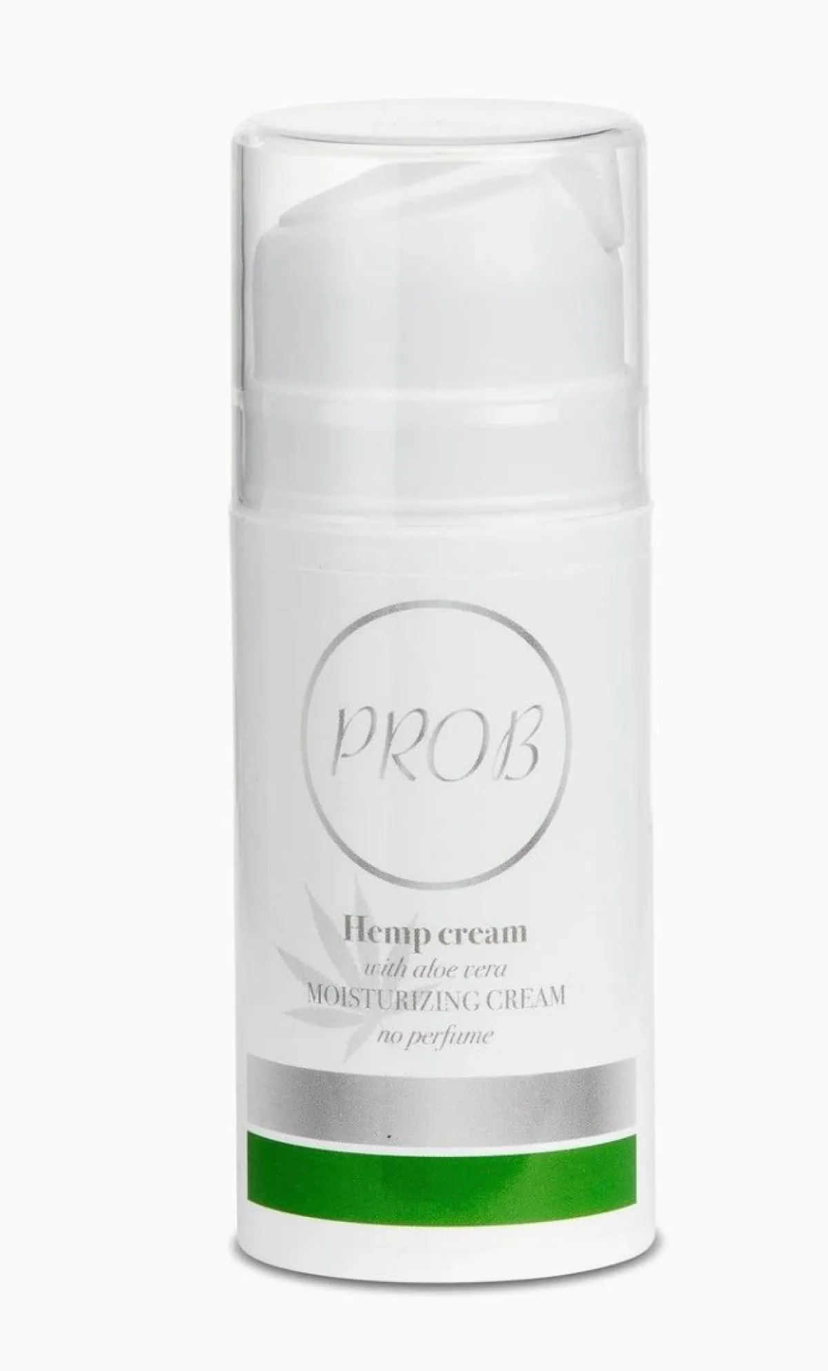 PROB Hempcream er en fuktighetsgivende krem ??for ekstra tørr, sensitiv og irritert hud. Den trekker raskt inn i huden. Er svært effektiv mot kløe forårsaket av sol og insekter. Beriket med høykvalitets sertifisert aloe vera og hampfrøolje. Samme krem ??som vår PROB Cream, men inneholder også Aloe Vera NB! 96 timer med karens på Aloe vera. Kan også brukes til valper og drektige dyr. Brukes ved behov Inneholder: Aqua, Aloe Barbadensis, Carthamus Tinctorius frøolje, natrium, stearoyllaktylat, glycerylstearat, cetylalkohol, urea, fenoksiglyserin