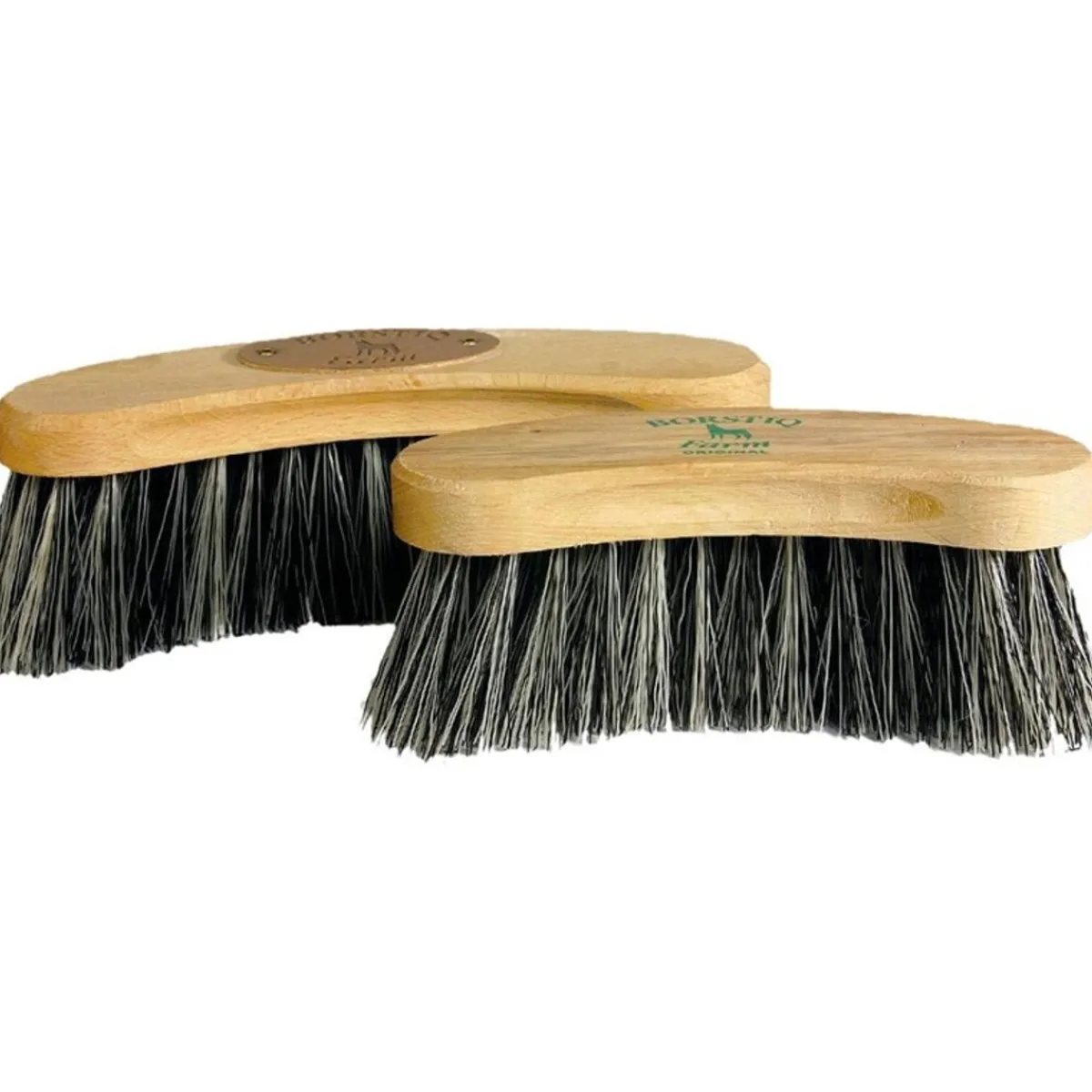 Medium stiv bust i syntetfiber som effektivt fjerner støv, skitt og flis fra hestens hårlag.