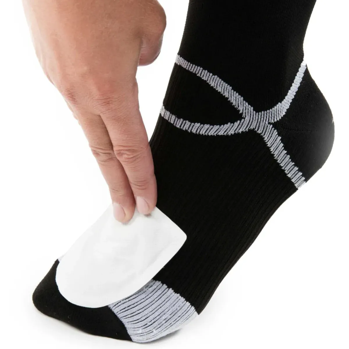 - Selvklebende og festes enkelt rett på føttene eller sokken