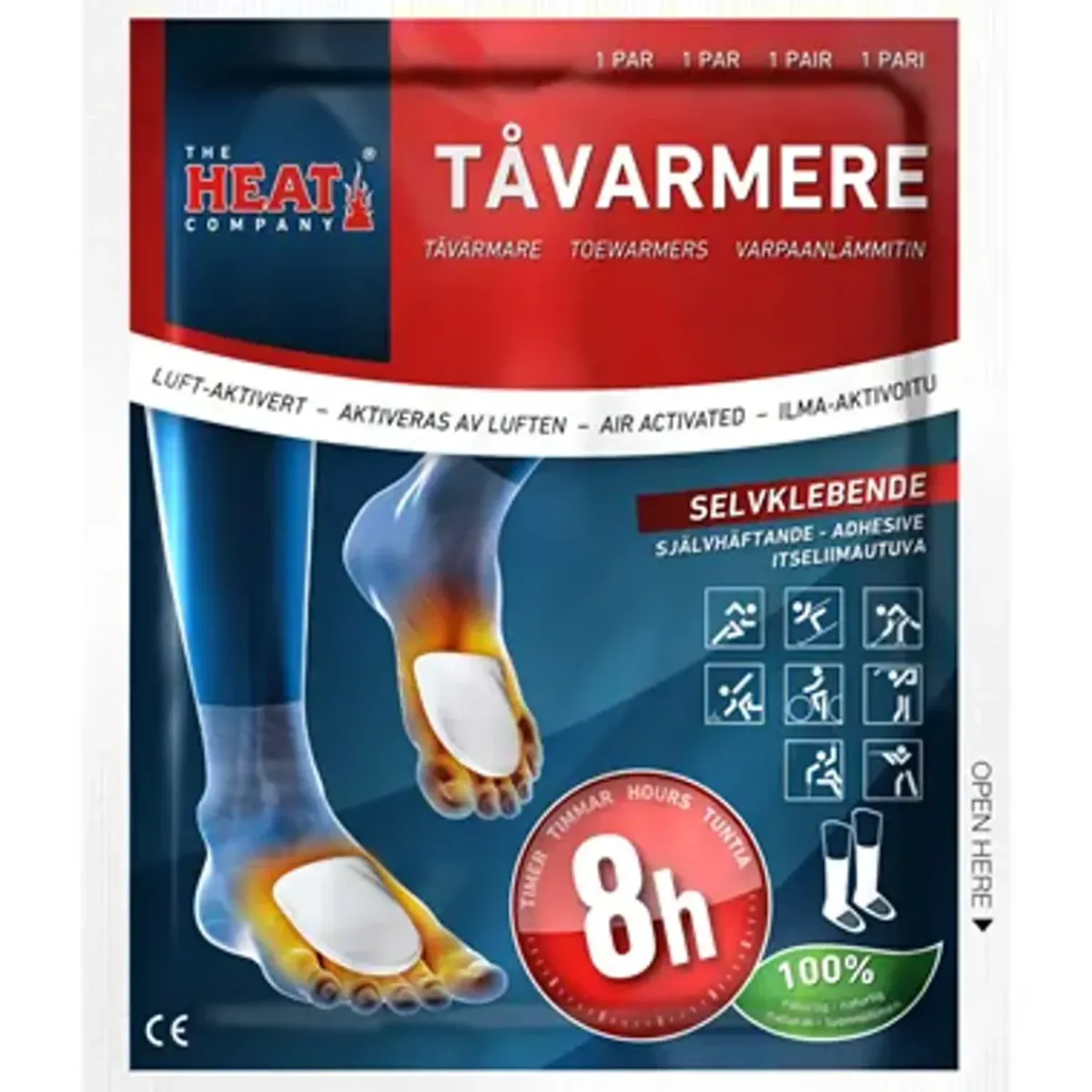 Tåvarmer – små selvklebende lapper som kan festes rett på føttene eller sokkene og som avgir varme i inntil 8 timer.