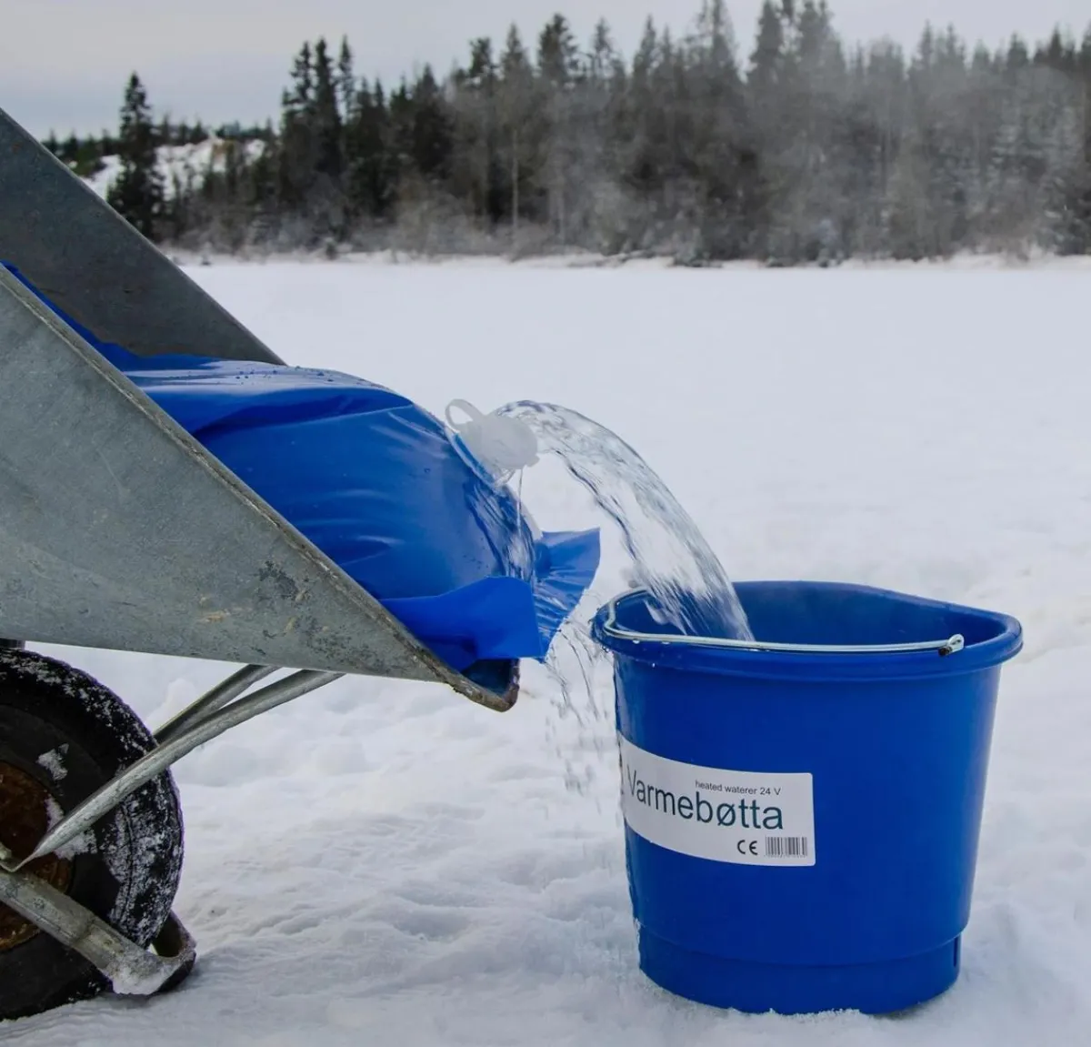 Varmebøtte som holder 20 liter vann isfritt gjennom vinteren.