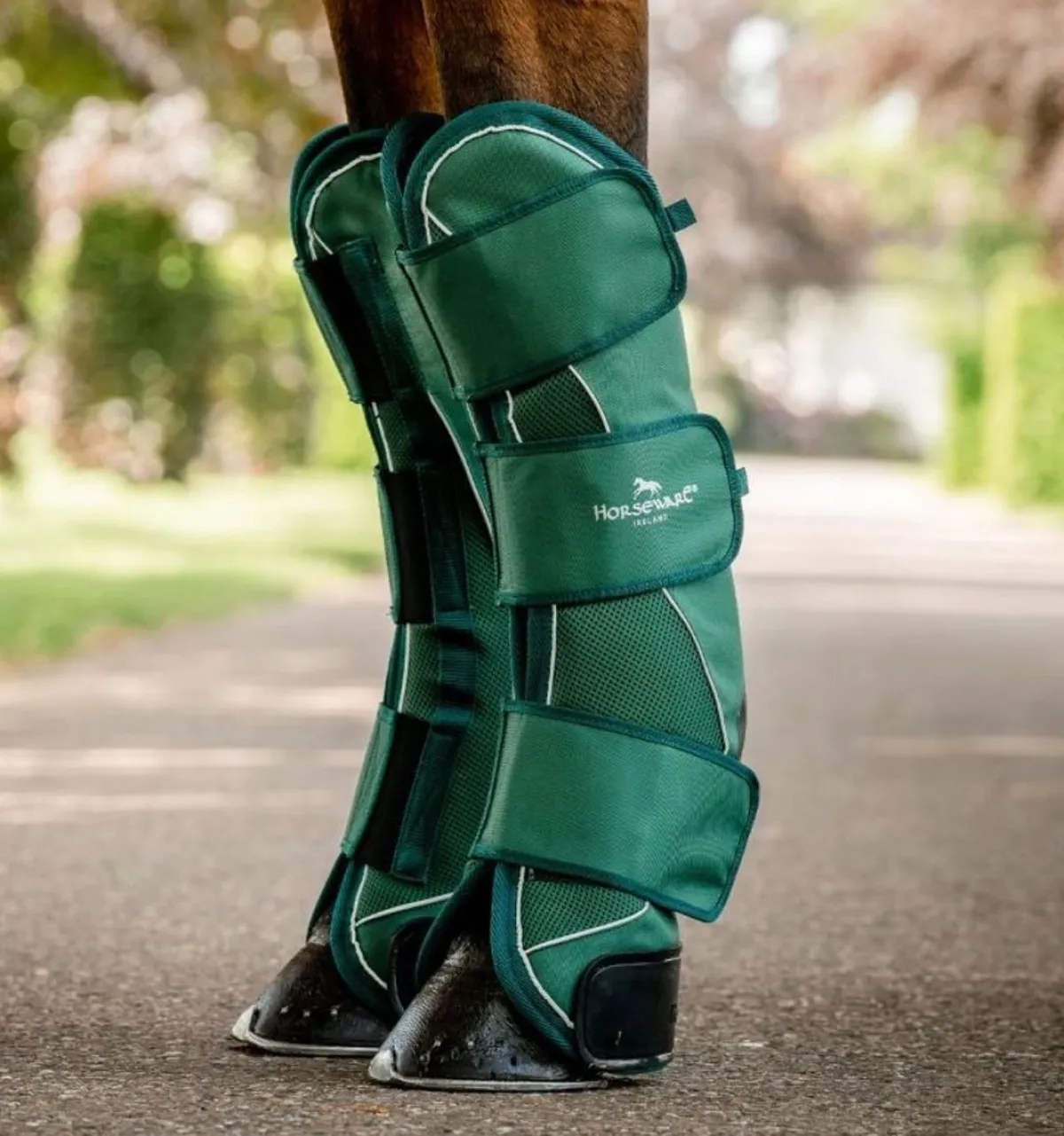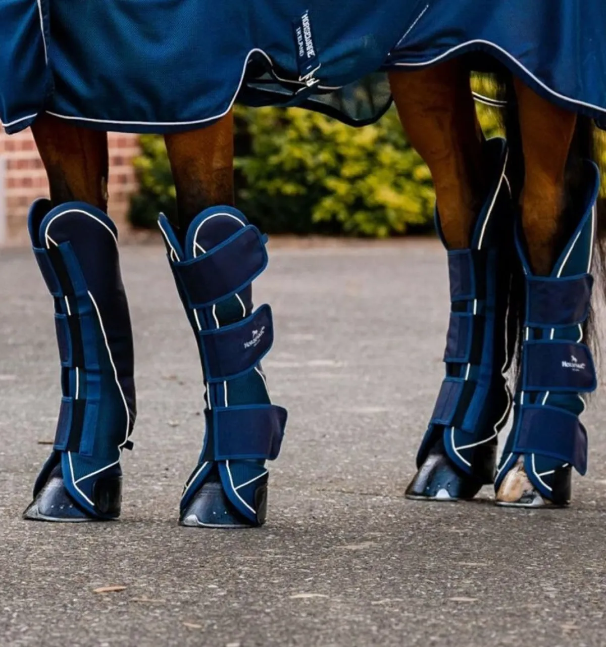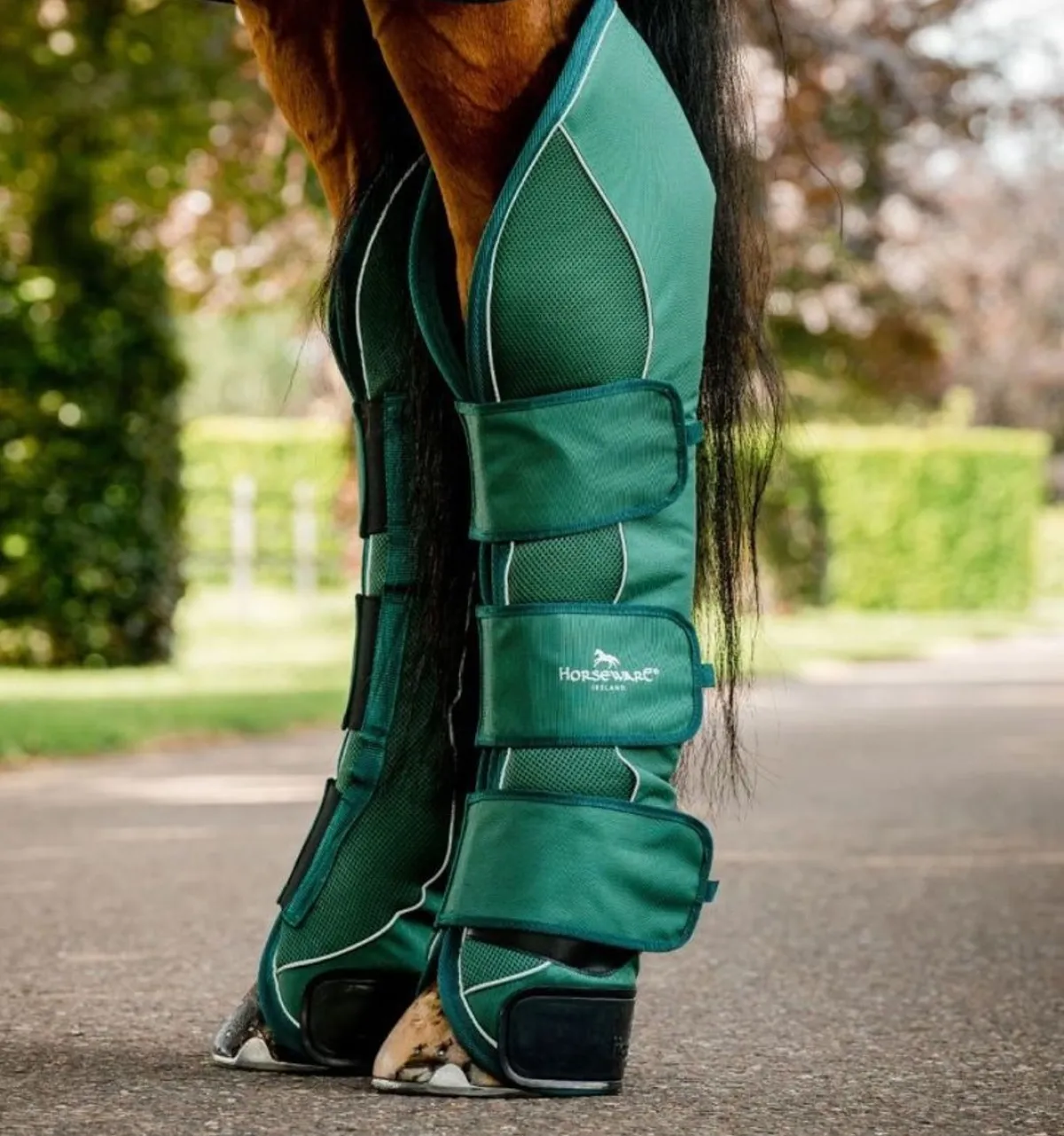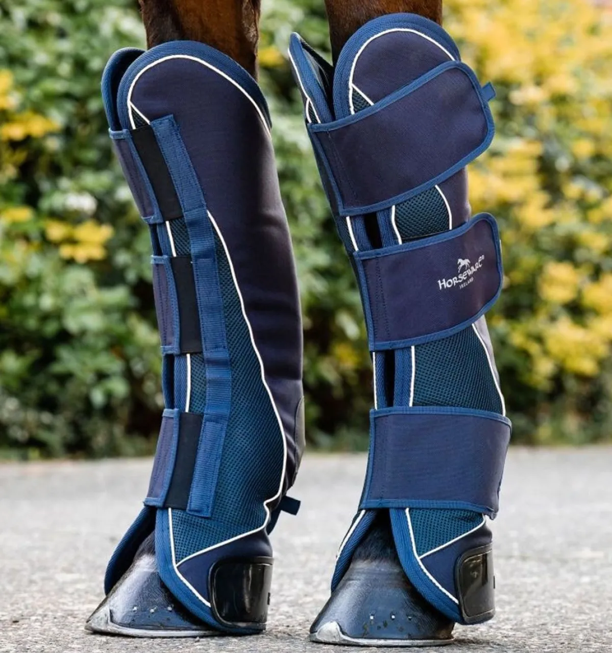 De elastiske stroppene gjør dem enkle å feste, noe som sikrer en sikker og tettsittende passform på ulike hestestørrelser.