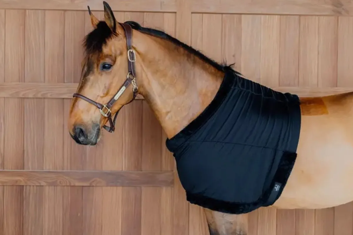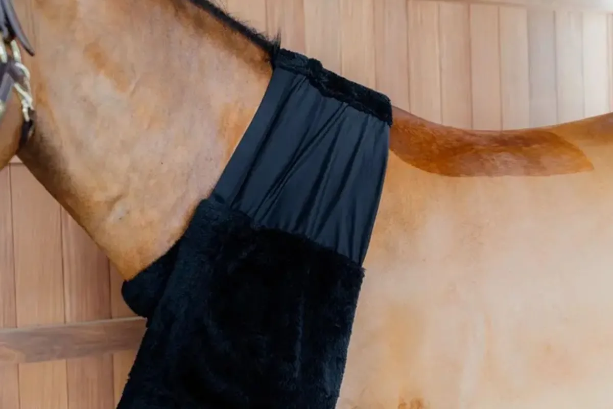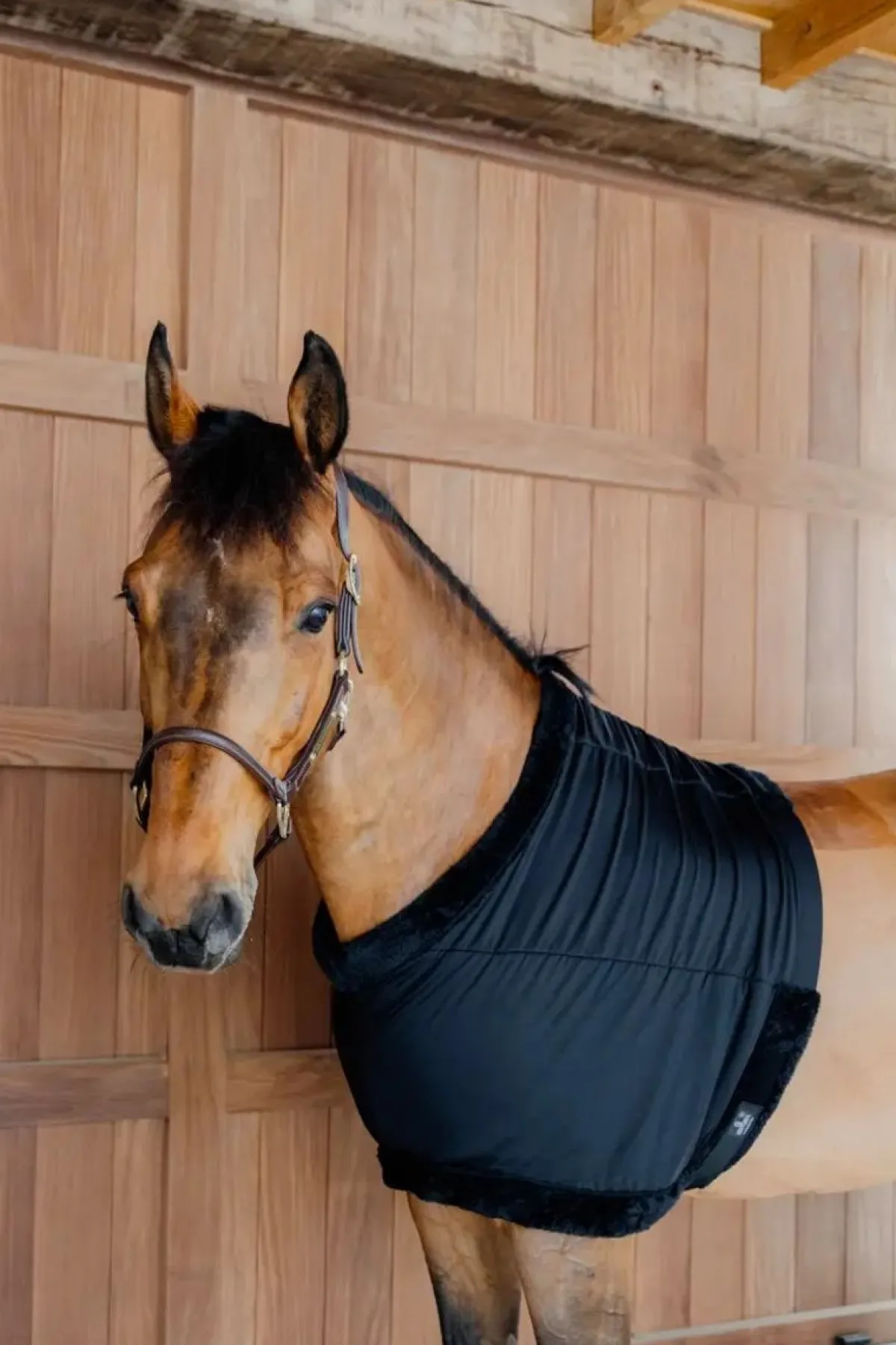 Brystbeskyttelsen brukes under et stalldekken eller utedekken for å forhindre gnagsår. Det er enkelt å ta på beskyttelsen, du trenger bare å skyve den over hestens hals og lukke borrelåsen bak forbeina.