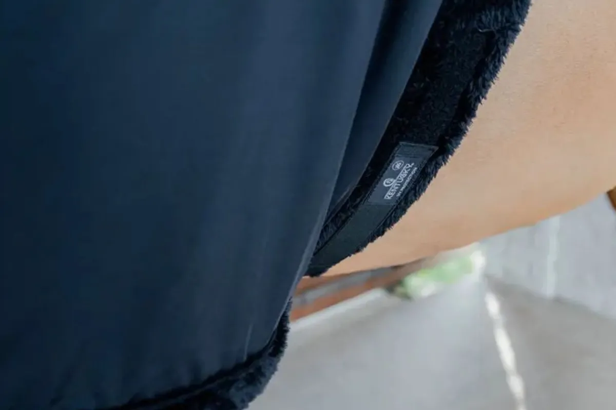 Utsiden av brystbeskyttelsen er laget av en blanding av polyester og lycra. På innsiden har brystbeskyttelsen en kombinasjon av lycra og vår velkjente kunstige kaninpels.