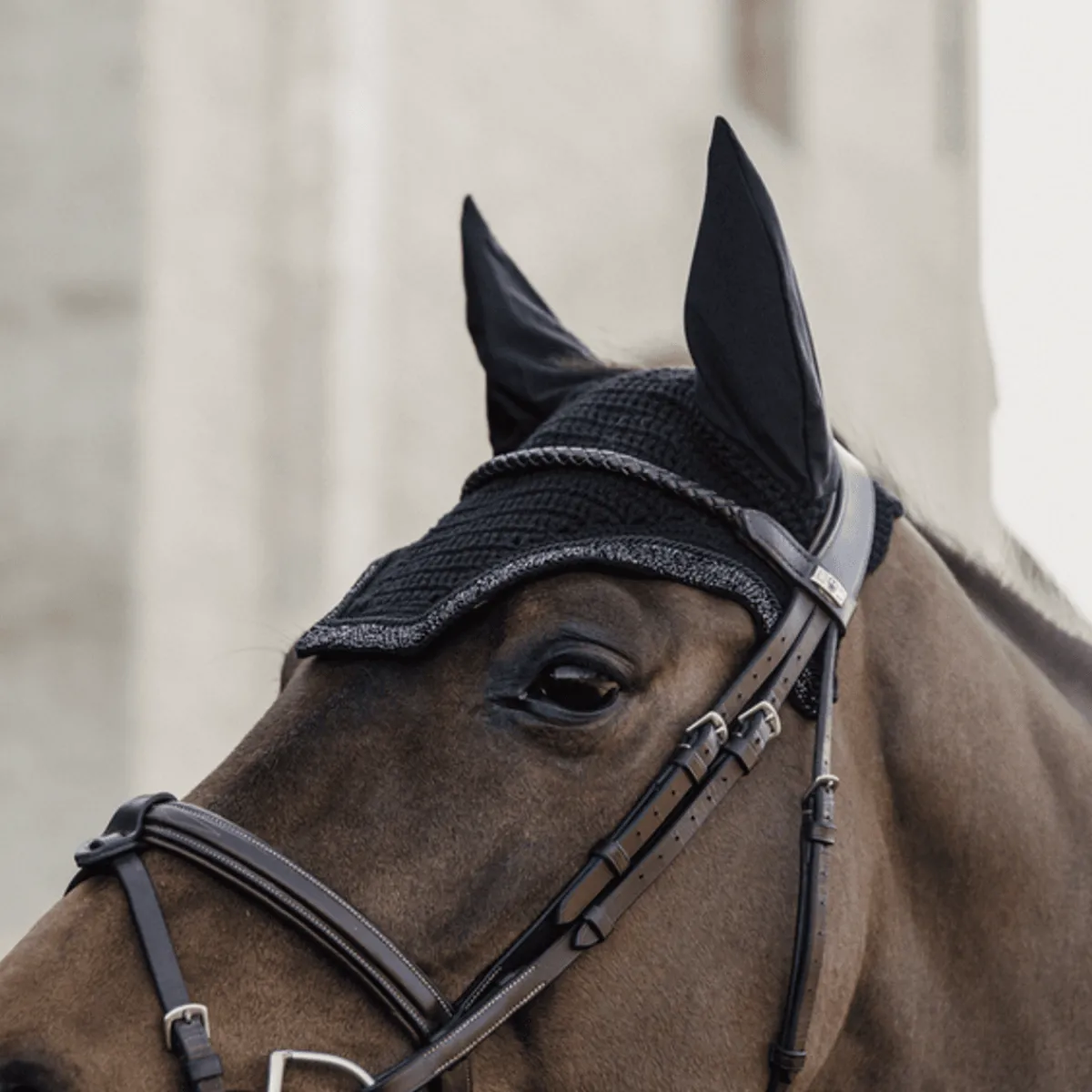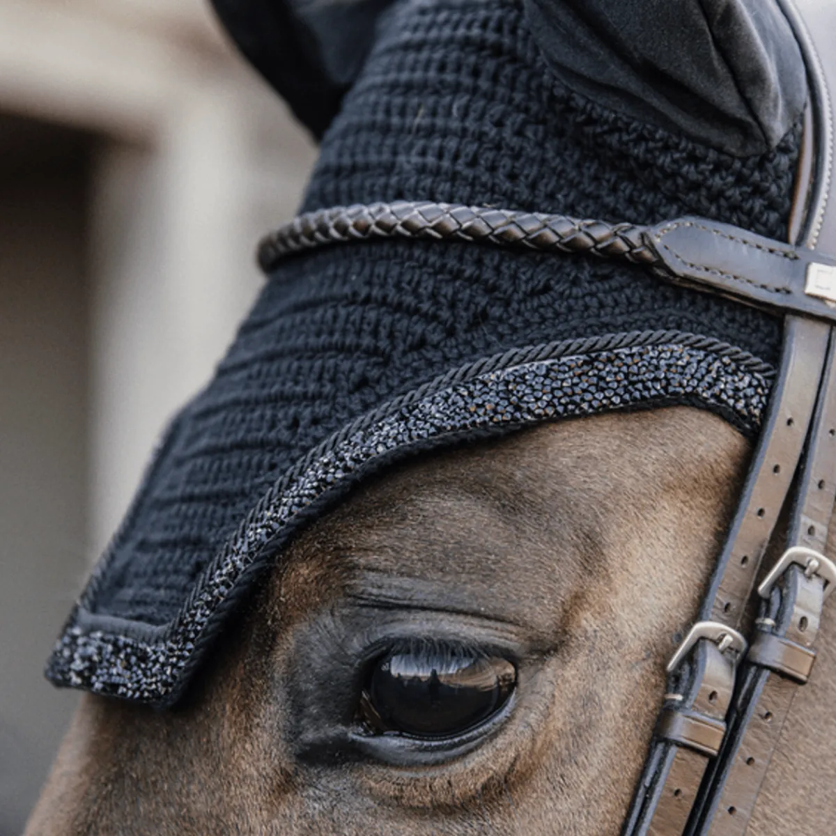 Nydelig ørehette med lycraører og passpoal av små glitterstener.