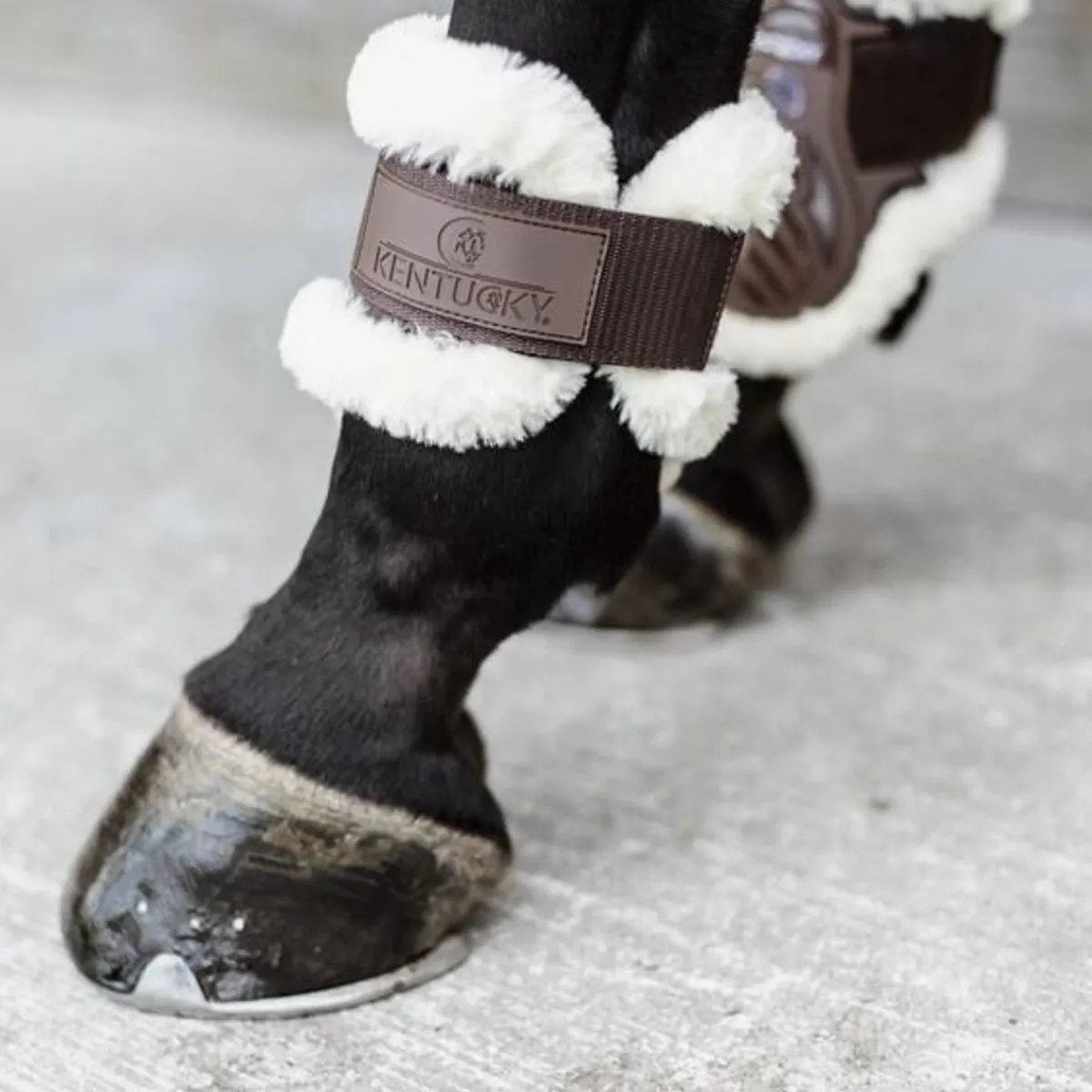 Innsiden av belegget er forsterket med et ekstra lag med TPU for å tåle støt og stryk når hestens bein beveger seg. Disse beleggene er godkjente for både vanlige sprangklasser og unghestklasser etter FEI’s regler. Stoff og materiell Vegan Sheepskin Yong Horse Boots er laget av Kentuckys veganske saueskinn som har høy pustefunksjon. Det er det samme veganske saueskinnet som er brukt i de populære Shipping Halter, Show Rugs og på gjordene. De har et robust utvendig skall laget i lettvekts, men samtidig sterk TPU. Kentuckys ekstra høykvalitets borrelås som gir maksimum grip og sikkerhet for hesten din, slik at belegget ikke snur seg eller sklir ned.