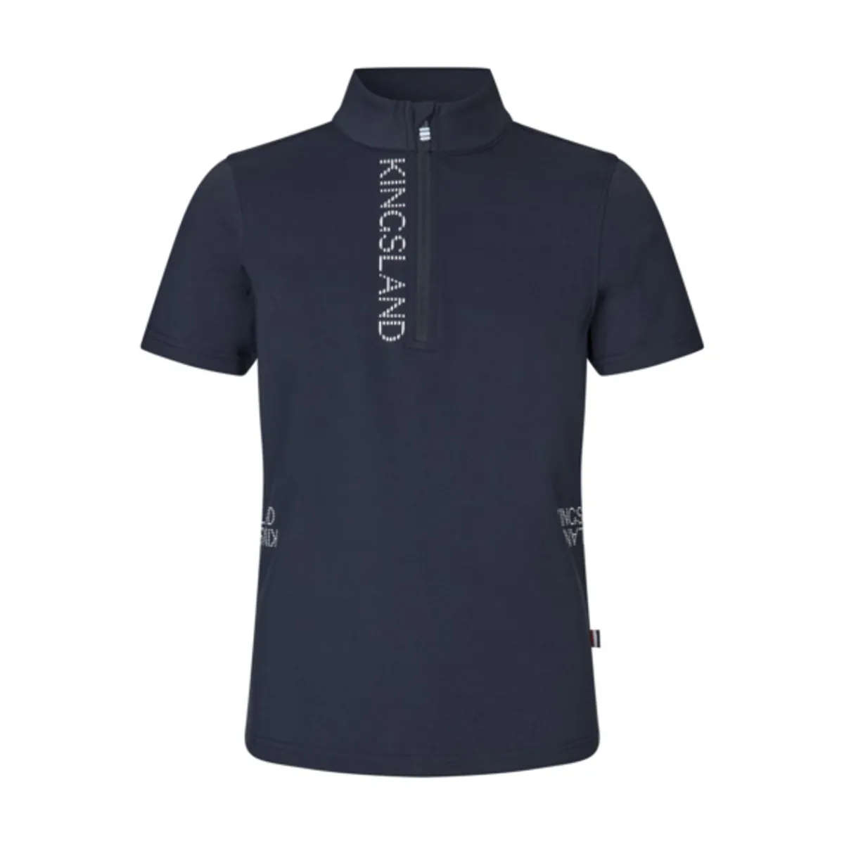 Treningstopp til juniorrytteren, laget i ett pustende stretch materiale. Stående krage med glidelåslukking foran.