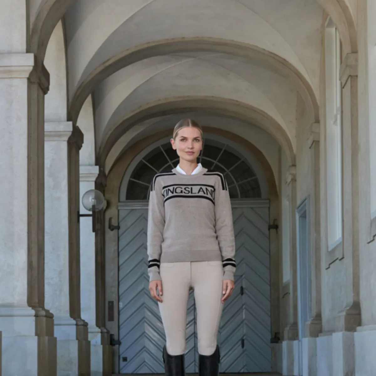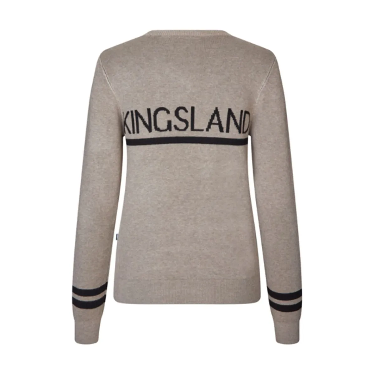 Nydelig strikket genser fra KL i Beige melange sorte detaljer. Kingsland logoen på brystet og på ryggen.