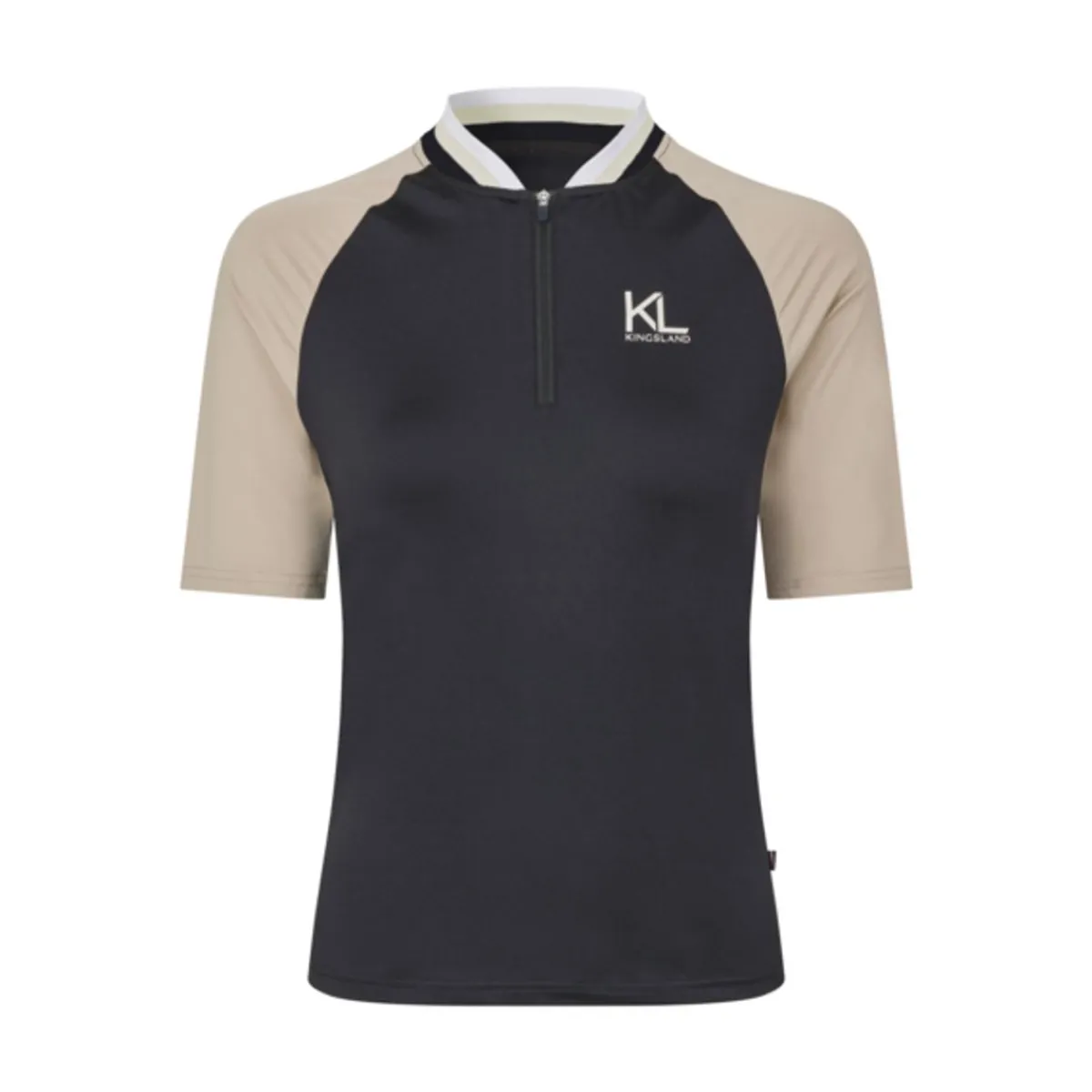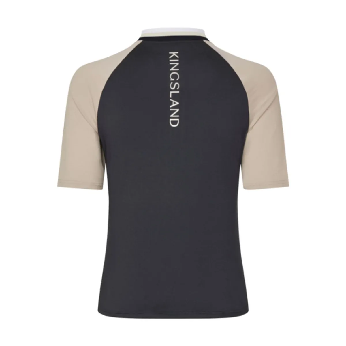 Lekker kortermet treningstopp fra Kingsland. Sort kropp og beige ermer. Diskret KL logo på brystet og Kingsland logo på ryggen.