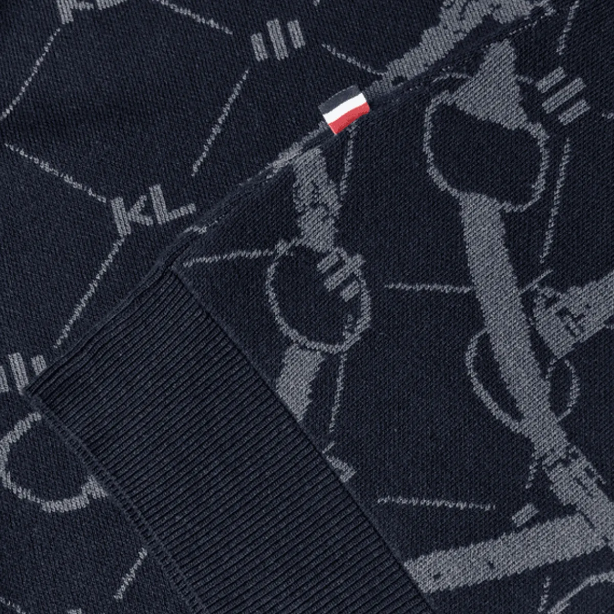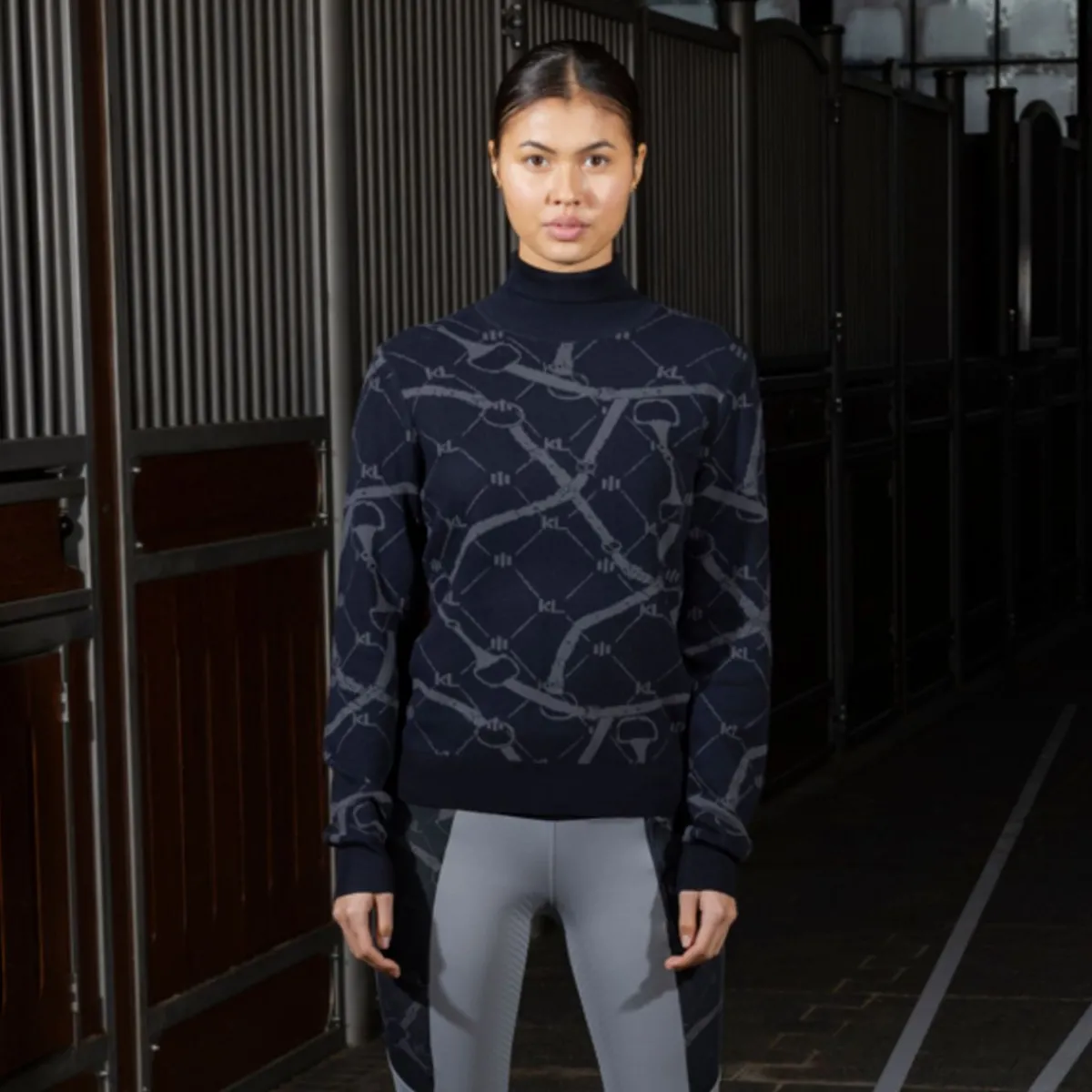 Lekkert mønster med KL logoen og bitt integrert i strikket