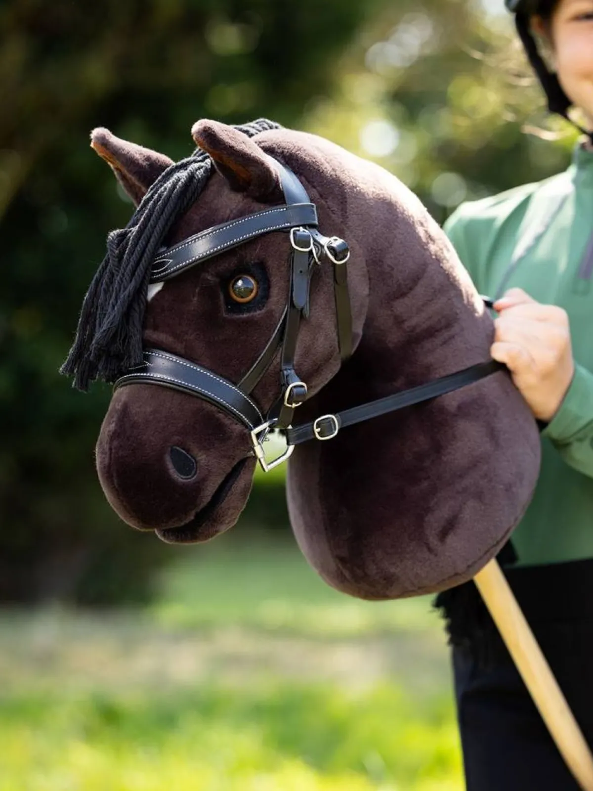 Freya er festet til en solid trestokk for aktiv lek, og hver hest er individuelt håndfullført, noe som gjør hver enkelt unik.