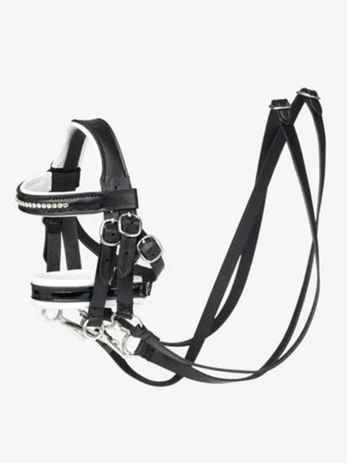 Laget av høykvalitets skinn med delikat søm på nesebåndet og pannebåndet. Passer fra 8 år og oppover. Kun til avtørking. Ikke egnet for barn under 8 år. Vær oppmerksom på metallbeslagene på produktet.