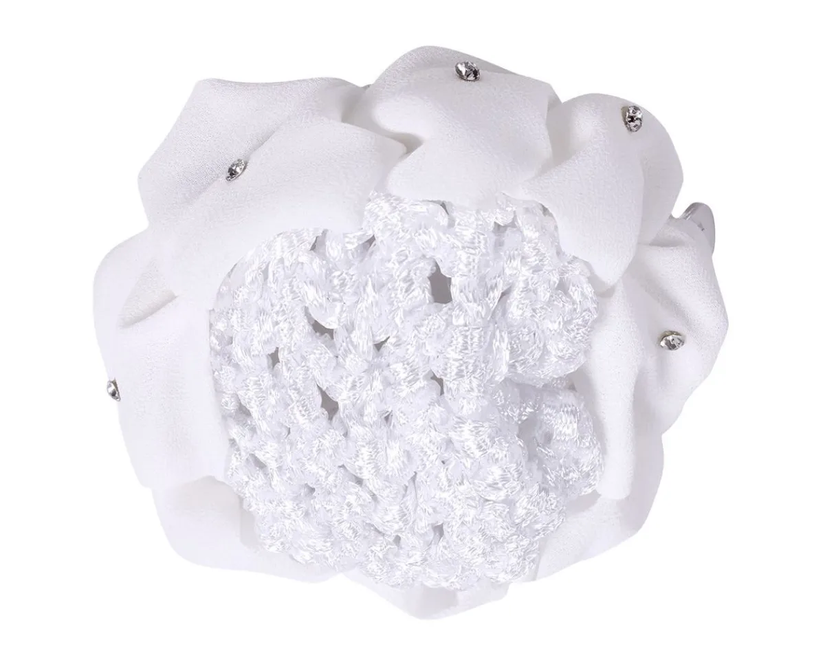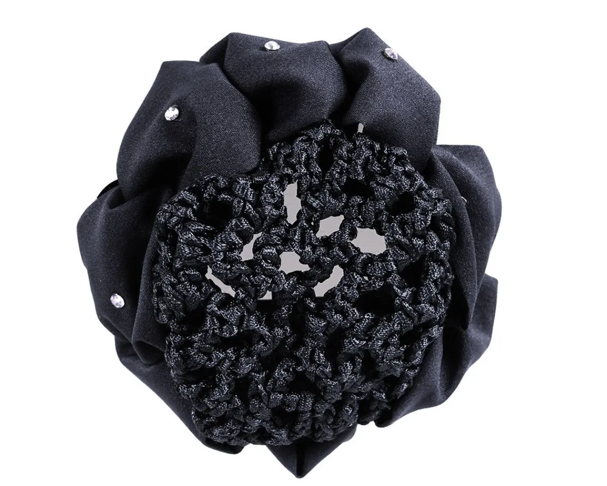 Hårnett med en scrunchie festet til. Dekorert med små sølv rhinestones!