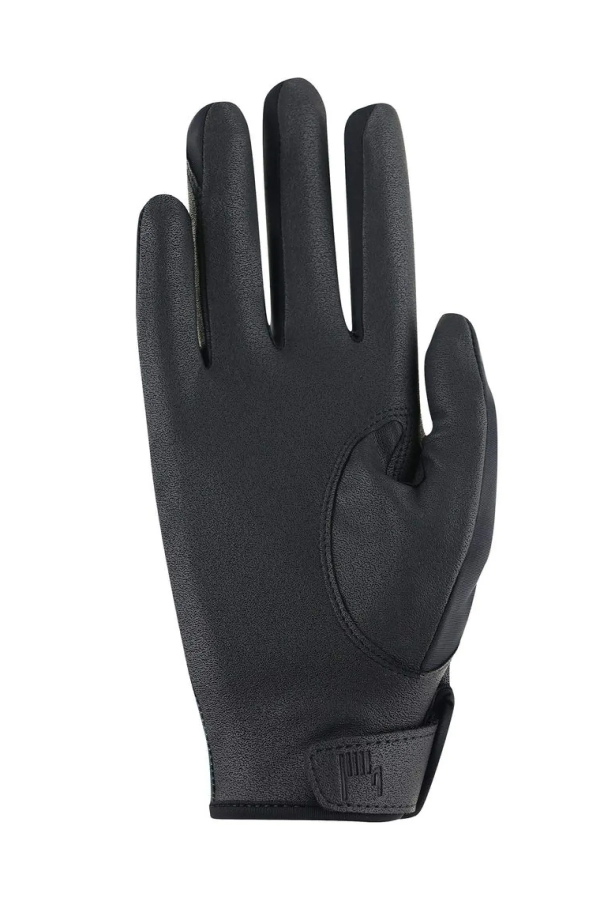 Denne modellen er spesielt godt egnet for bruk med både lær- og vevde tøyler og har en fargekoordinert stripe langs kanten av hånden samt et preget Roeckl Sports-logo på pekefingeren!