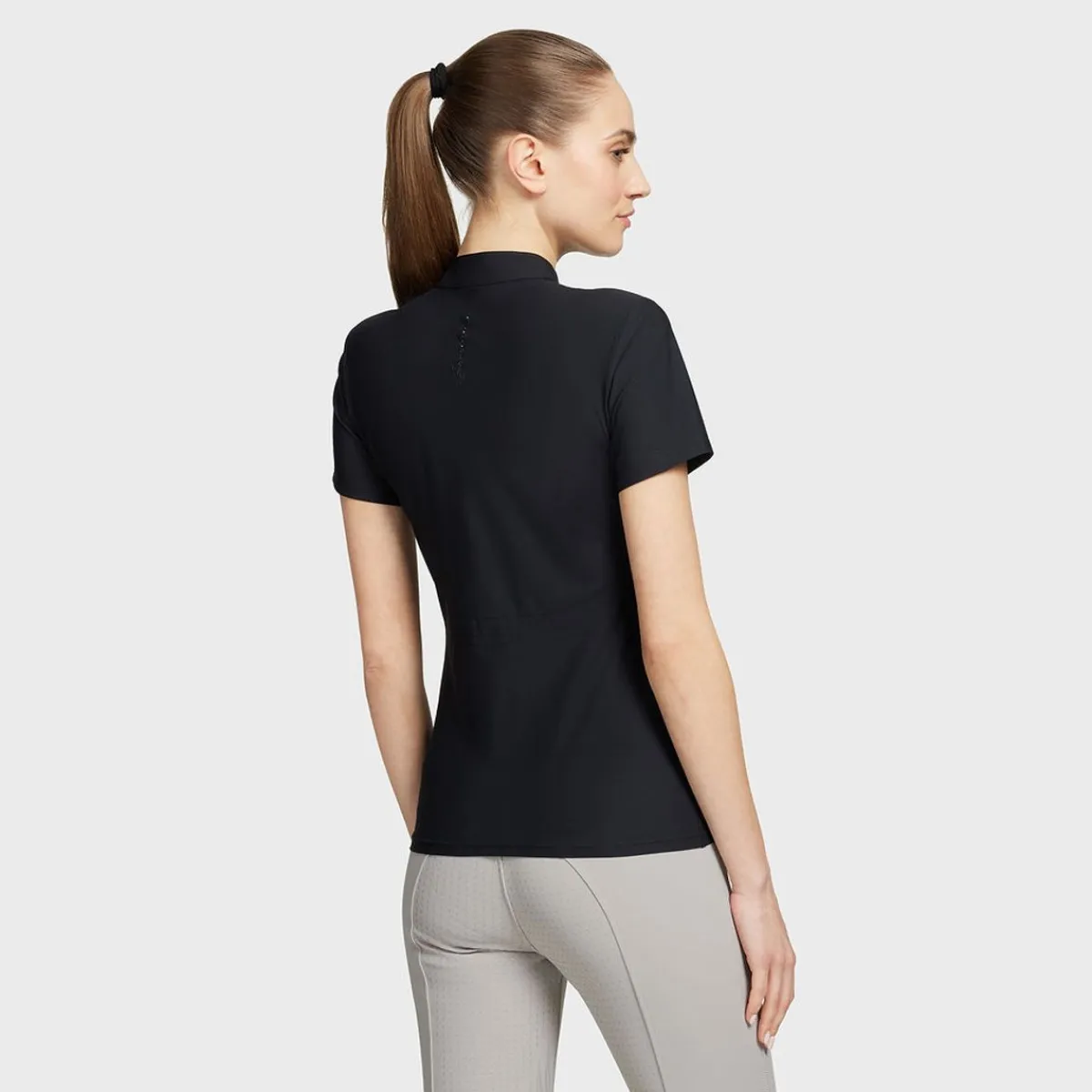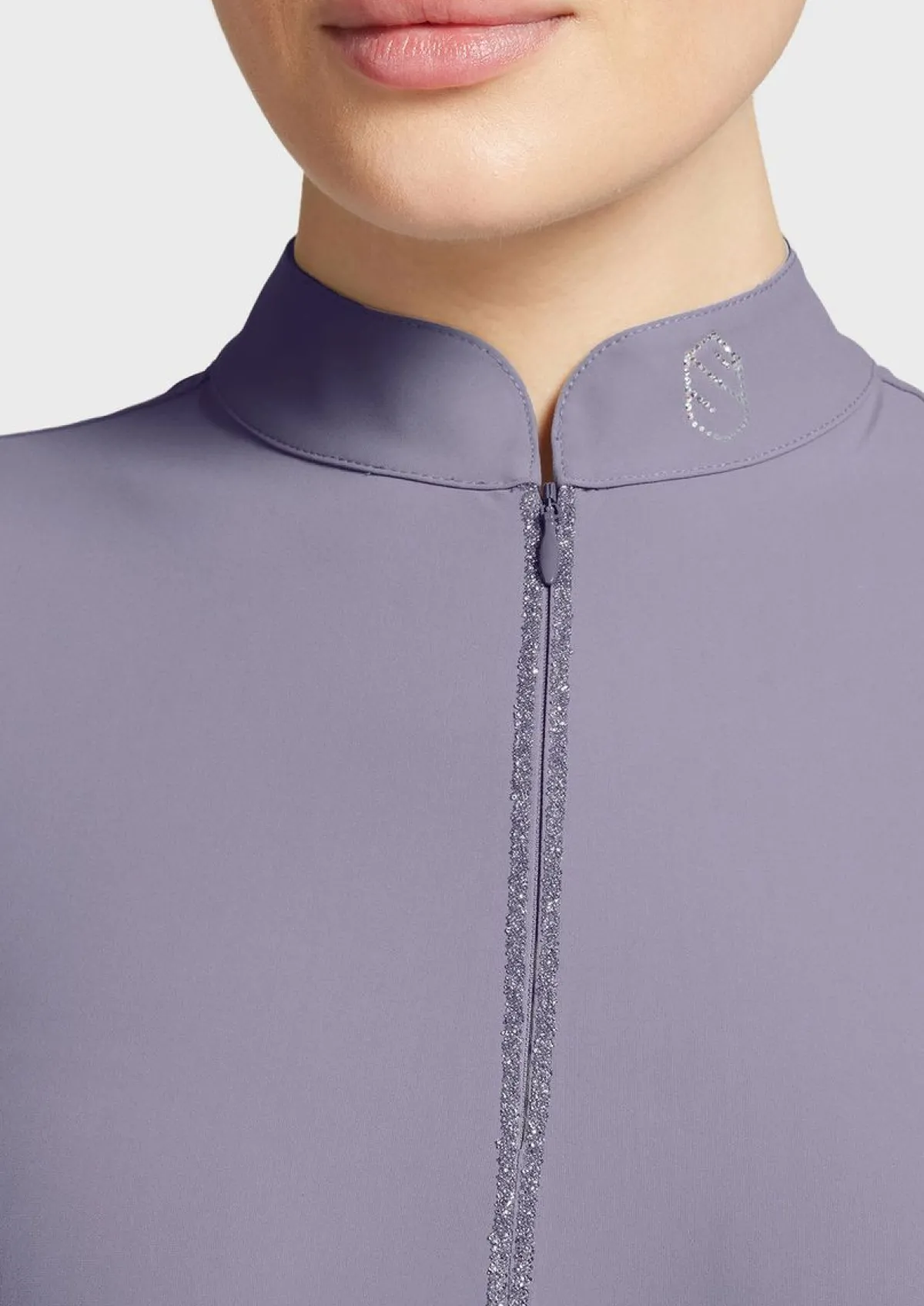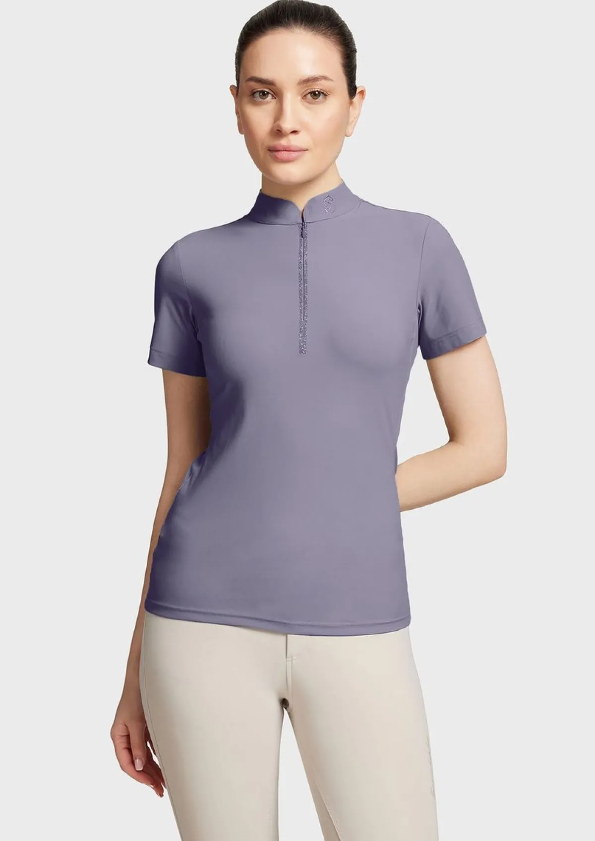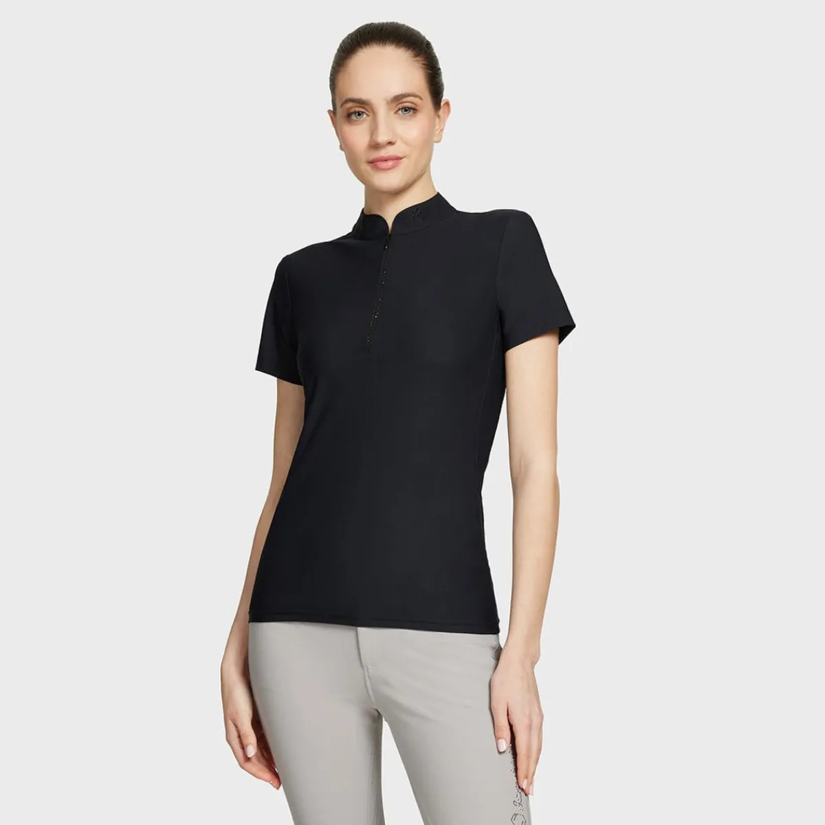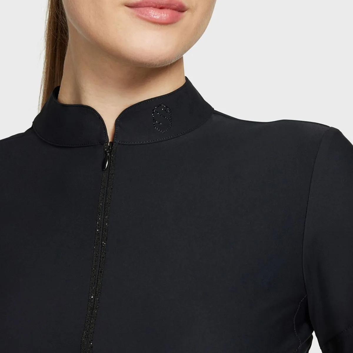 Dens innovative sammensetning opprettholder en lett følelse samtidig som skjorten utstråler et polert utseende. Skjorten har subtile Samshield-logodetaljer på kragen og en glidelås i Swarovski-krystallstoff, som alt bidrar til dens raffinerte estetikk.