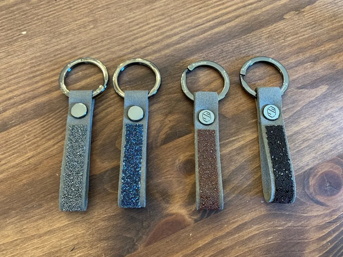 Leker nøkkelring laget i Alcantara med Samshield krystaller!