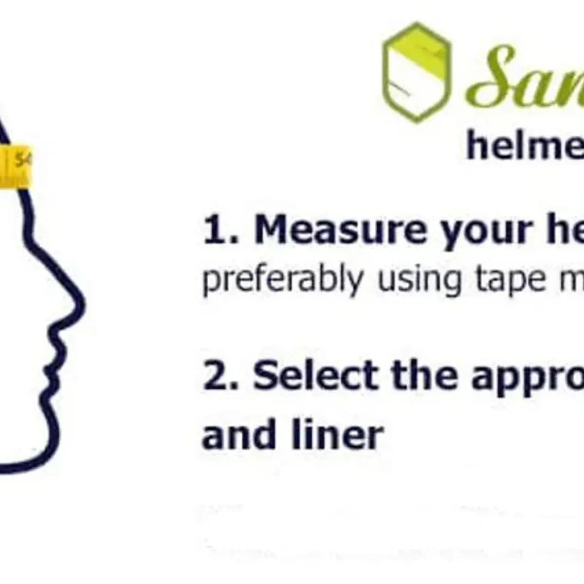 Se bilde for hvordan du måler for å finne den riktige størrelsen på hjelmen og lineren.