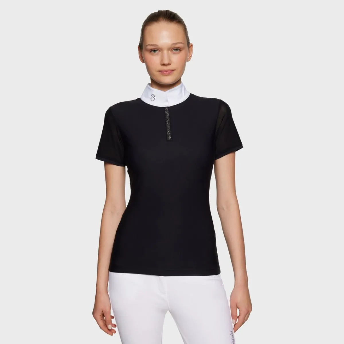 Kortermet design med Swarovski blason, usynlig glidelås med ultrafin steindekor og pustende meshpaneler!