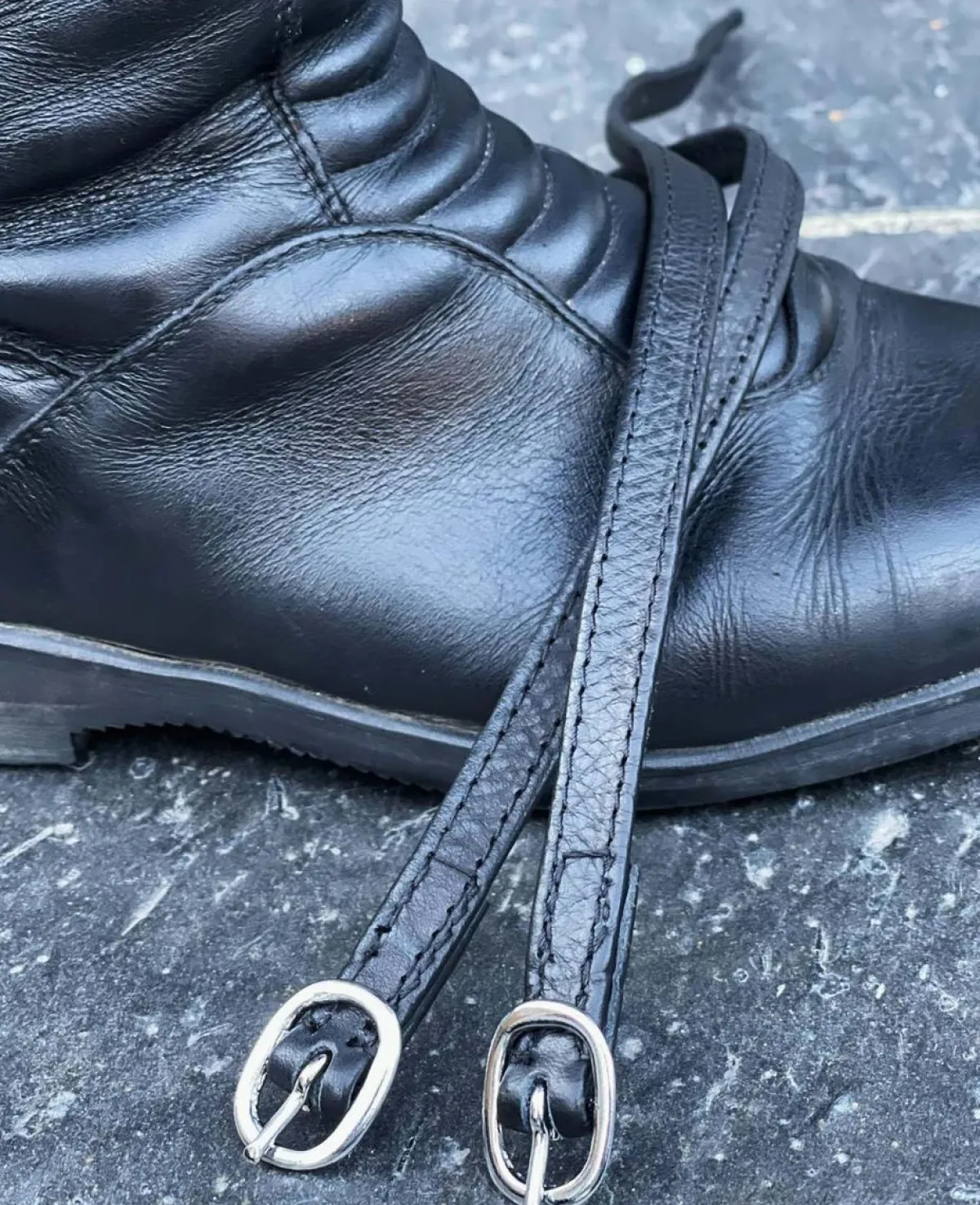 Reimene har en elegant rund, sølvfarget spenne med elastisk strikk ved spennene.