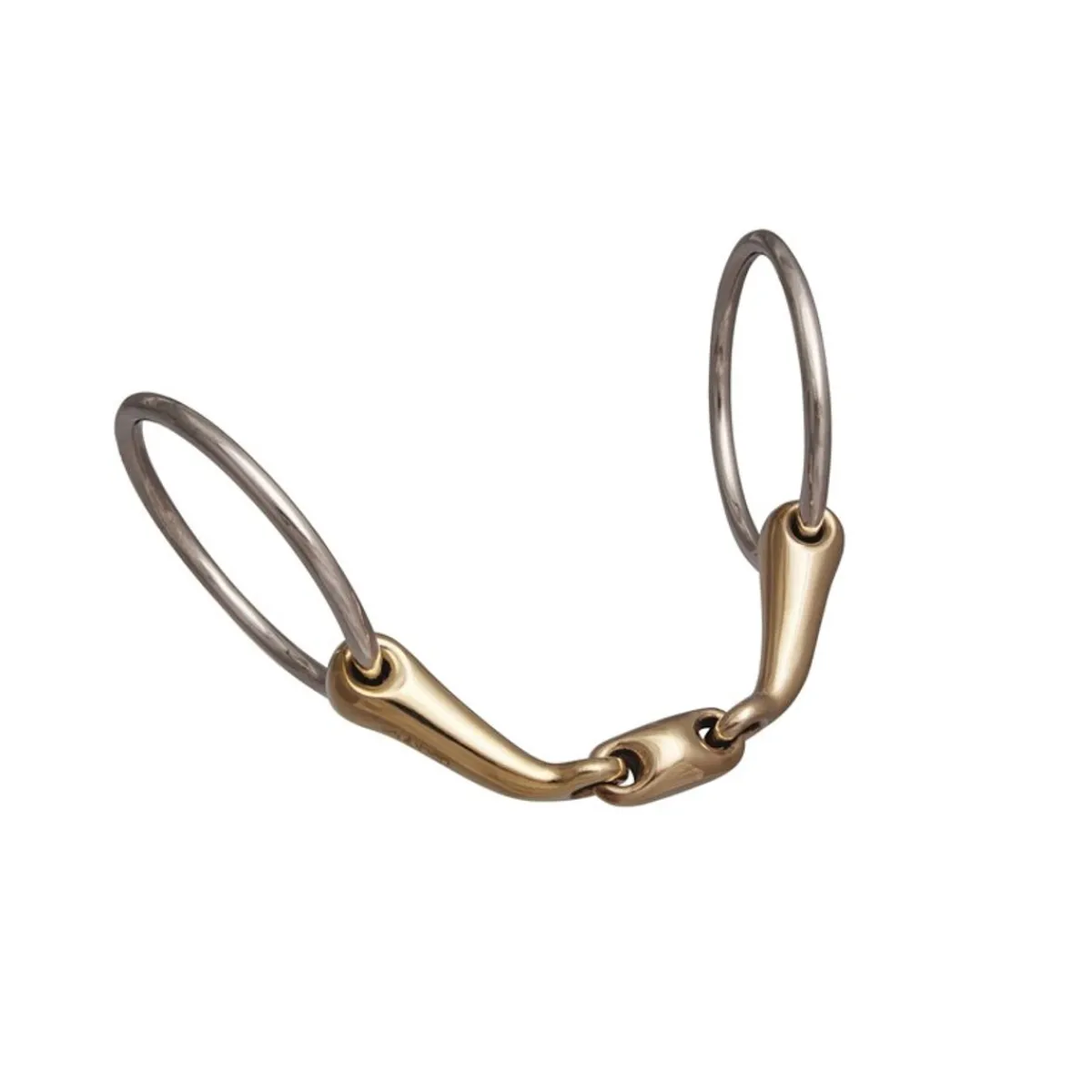Stübben Steeltec Anatomic Loose Ring Snaffle er et tredelt trinsebitt med munndel i «sweet copper» og runde, løse bittringer!