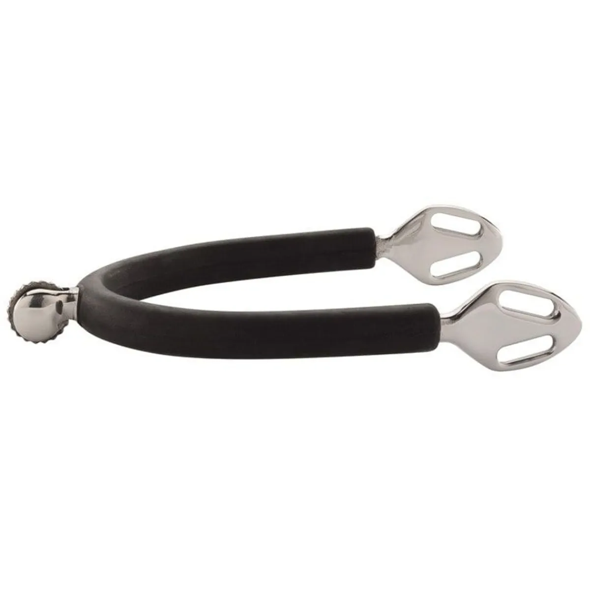 Overtrukket med gummi, som gjør at den sitter godt over ridestøvelen.