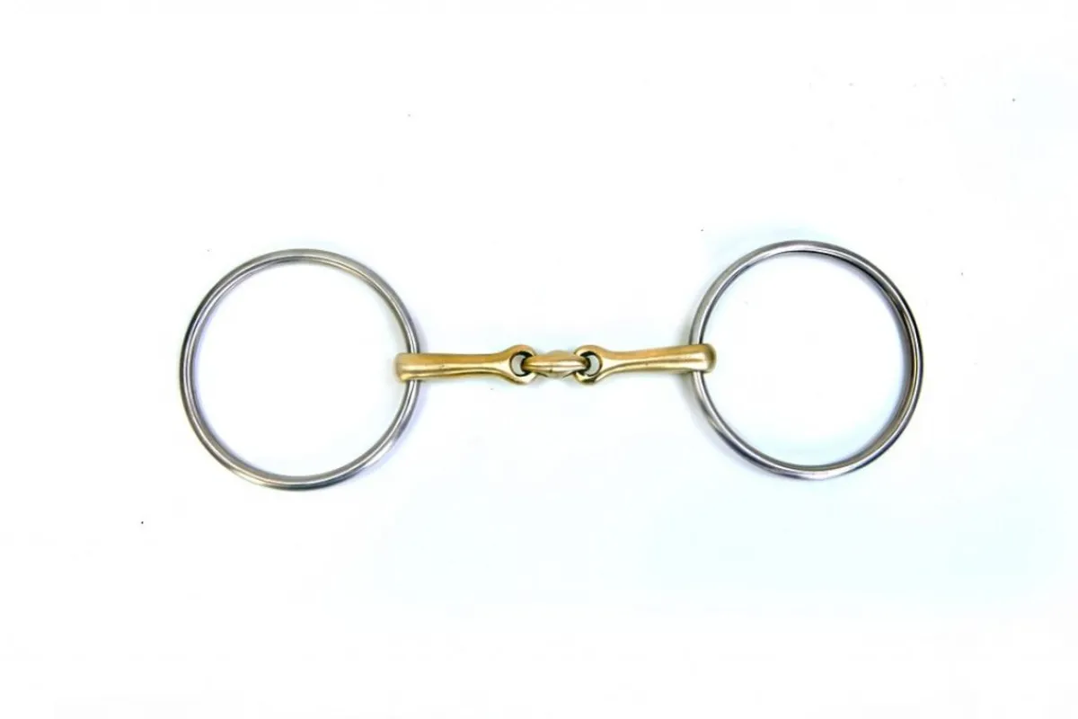 Vals bittene har en riktig god passform og ligger fantastisk i munnen på hesten. De store ringene gjør at det er meget lett å skape liv i bittet og det trykker ikke inn på kinnene. 3 delt bitt med munnstykke i messing