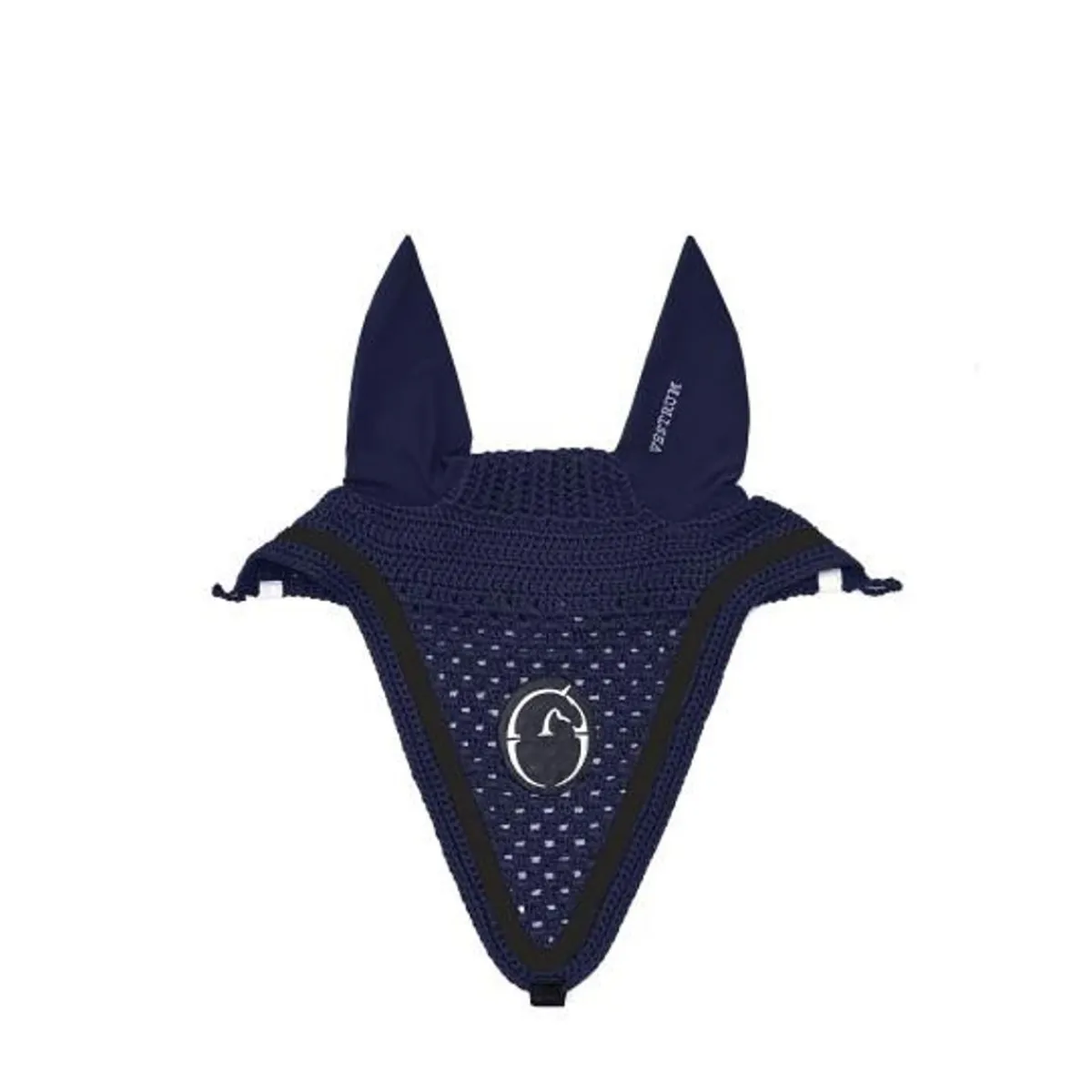 Håndlaget heklet lang ørehette. Laget av pustende og behagelig bomull, ørene er laget av bi-elastisk materiale. Det er et knapphull som lar deg feste den til hodelaget for større stabilitet på hestens hode. Vestrum logo foran og kontrastkant. Frastøter insekter og reduser støy.