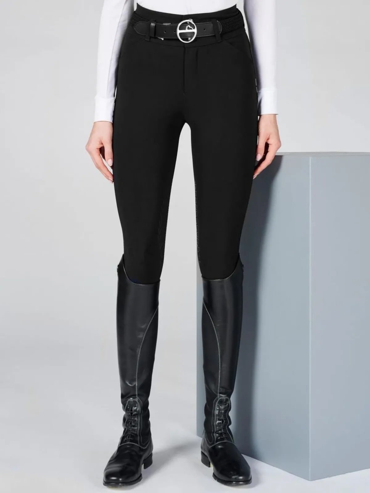 Ridebukser med høyt midje og kne grep laget av TK-stoff, et lett bi-elastisk materiale designet for å gi utmerket ytelse og støtte utøverens prestasjoner til enhver tid!